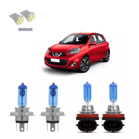 Kit Lâmpada Super Branca H4 H11 + T10 Leds Nissan March