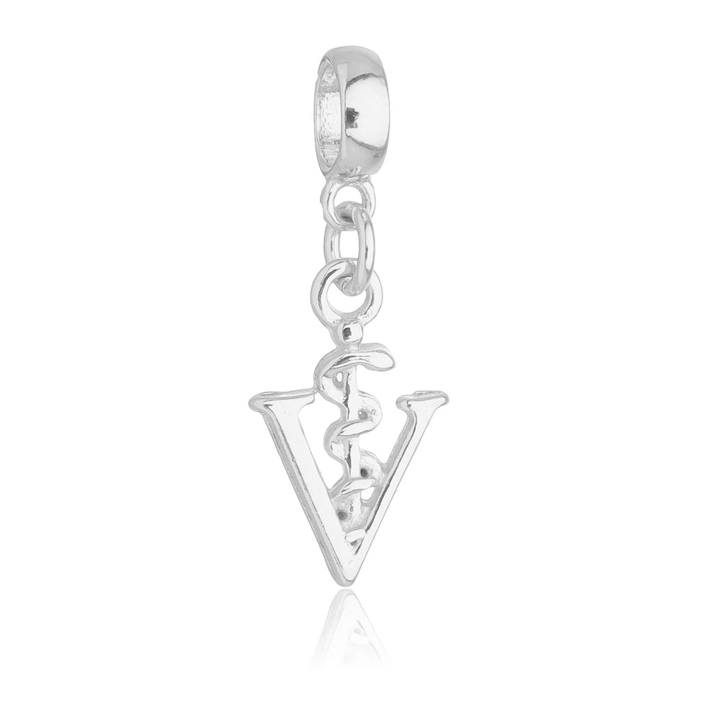 Pingente Berloque Símbolo Profissão Veterinária Banhado a Prata 925