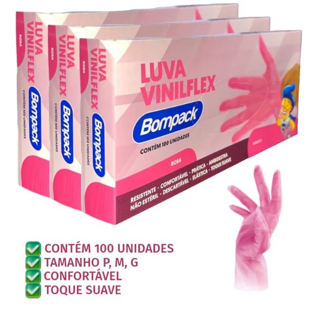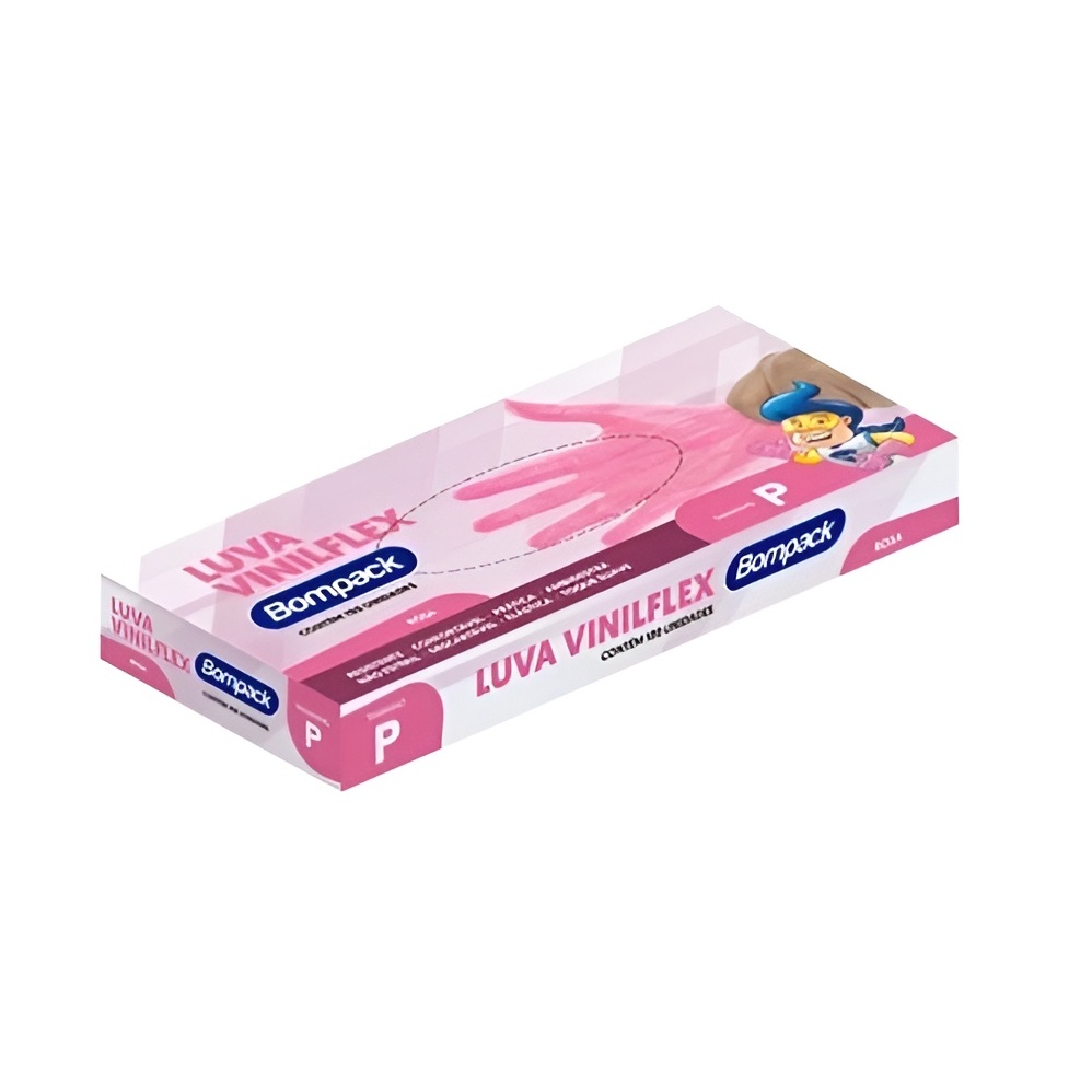 LUVA ROSA DESCARTÁVEIS VINILFLEX SEM PÓ BOMPACK - C/100