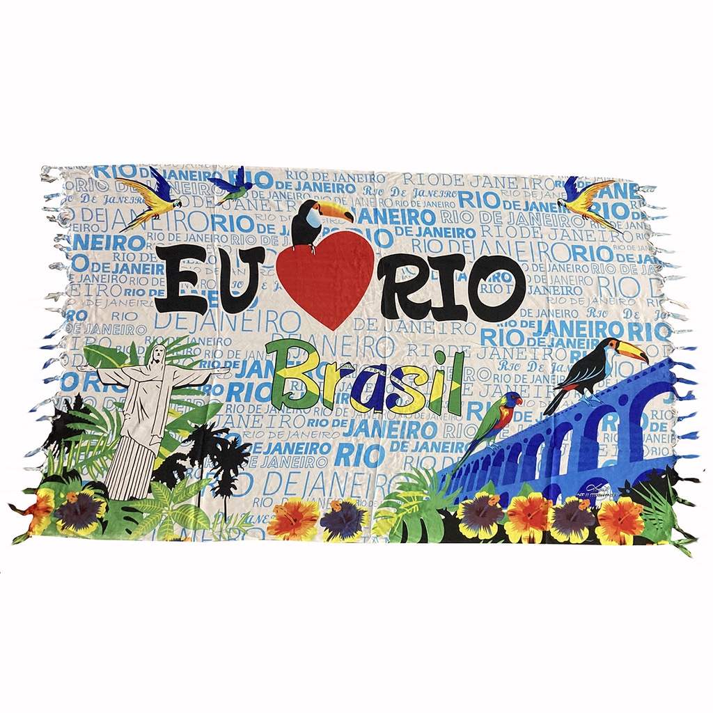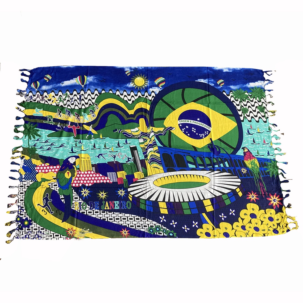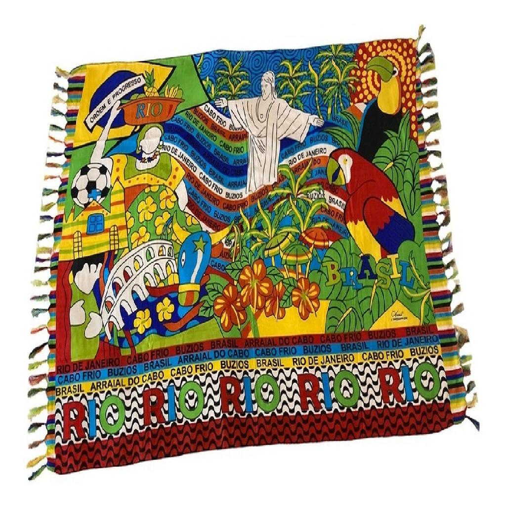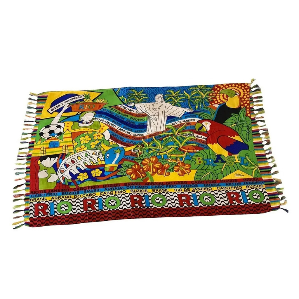 Canga De Praia Poliéster Brasil Rio De Janeiro Cristo Redentor Papagaio