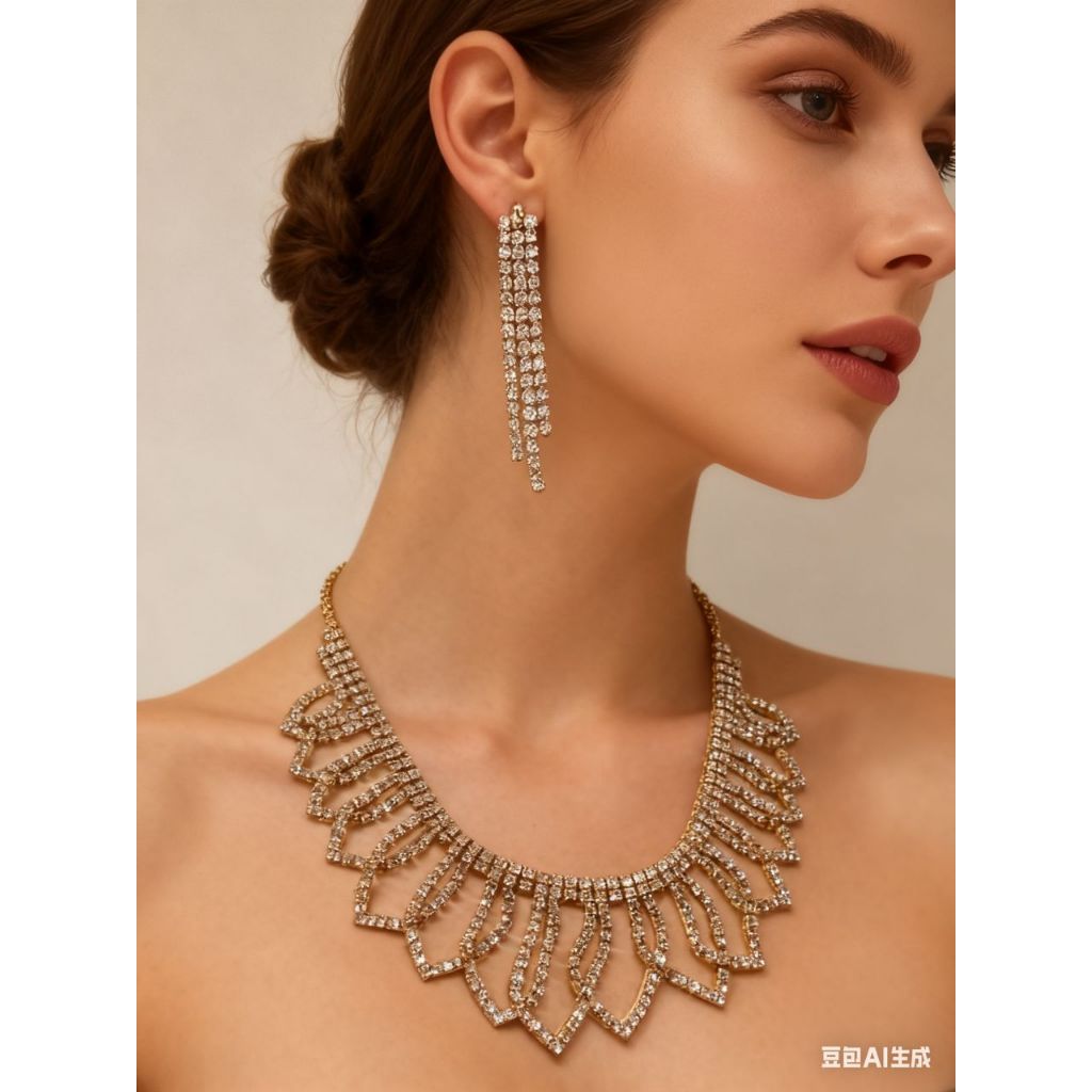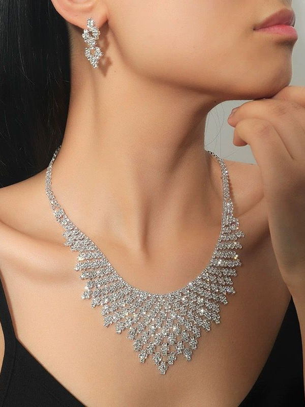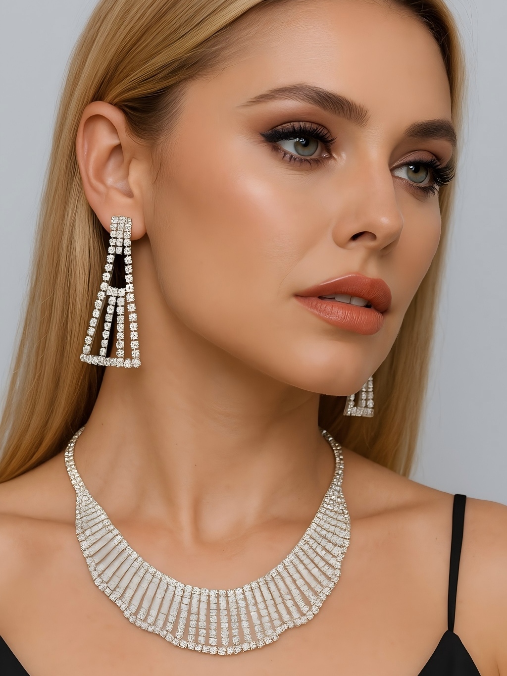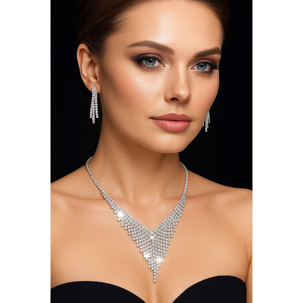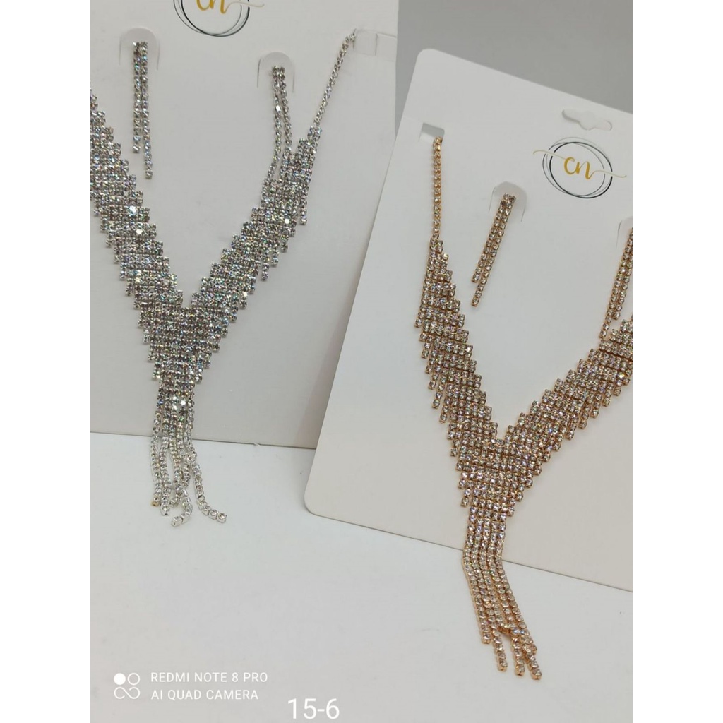 Z.W BIJUX - Conjunto de Zirconia- Colar e Brinco de Strass/15-11