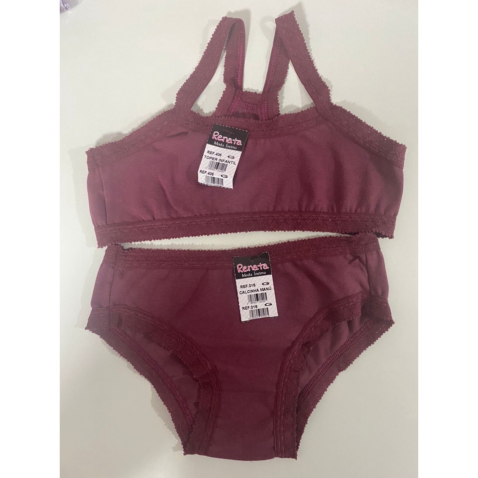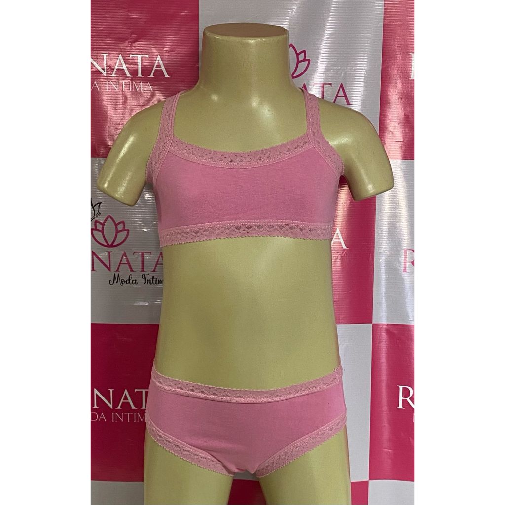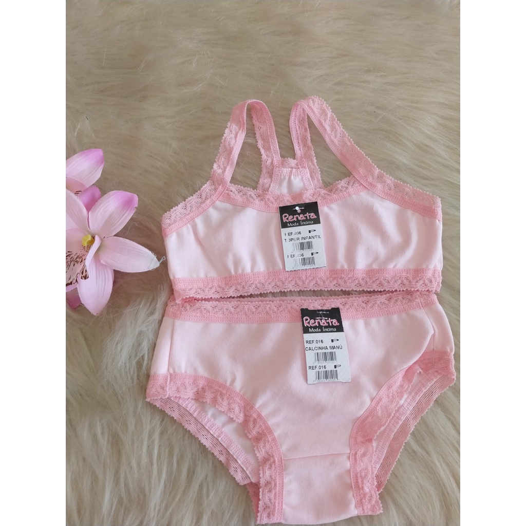 Conjunto Menina Moça Lingerie Infantil Sutiã Top calcinha Rendinha Criança Infantil