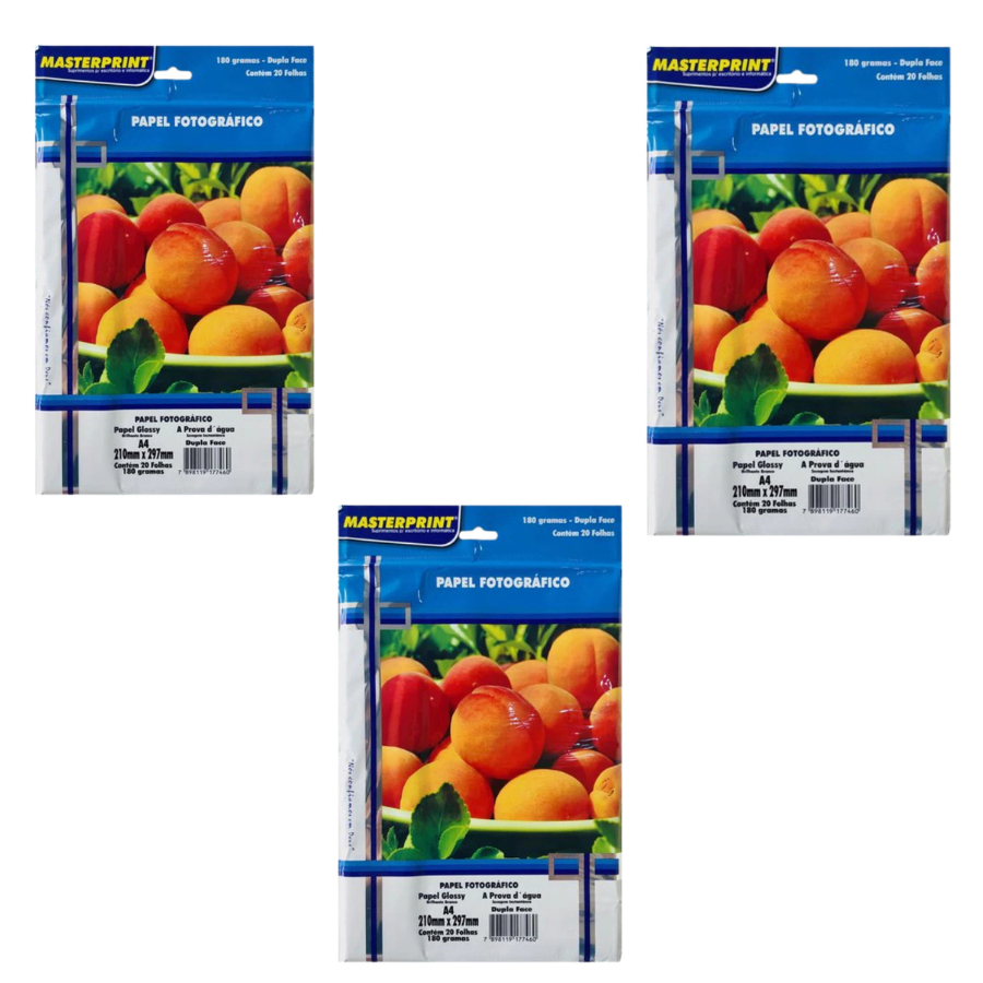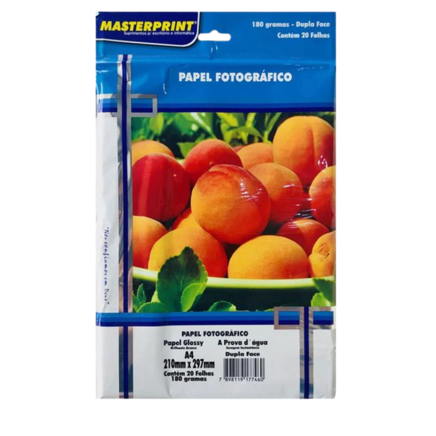 Papel Fotográfico Dupla face 180g A4 Glossy Brilhante Resistente a Água Masterprint