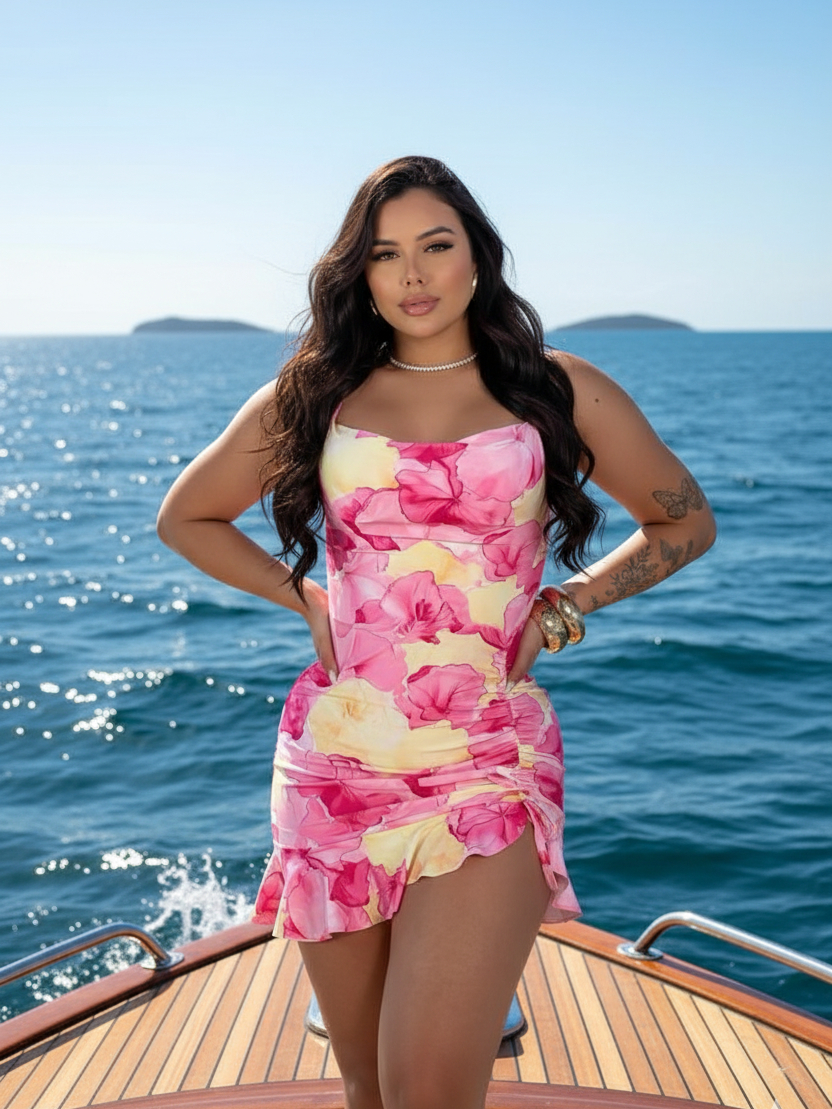 Mini Vestido Alçinhas Babadinhos Florido Estampado Sexy Blogueira Verão Gringa