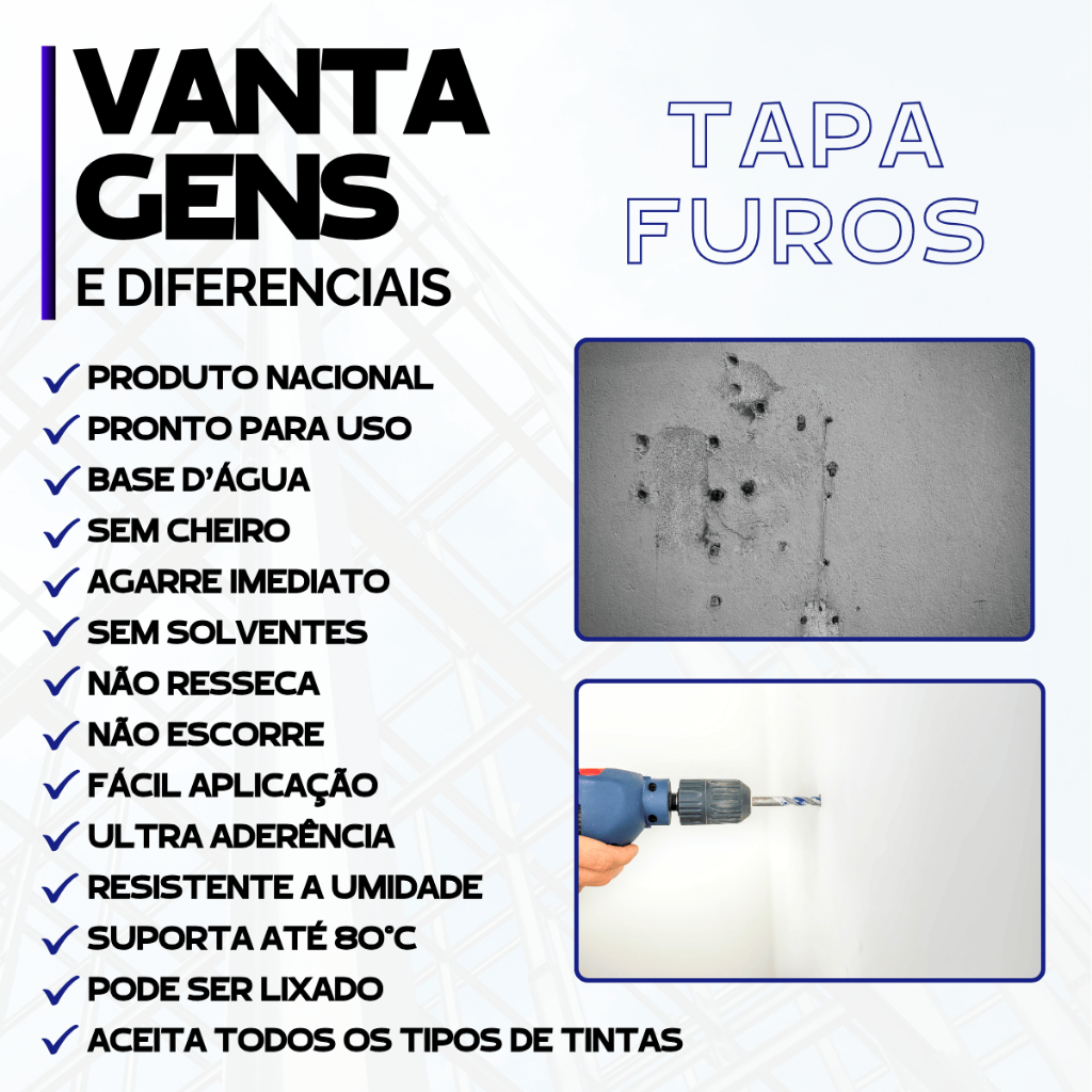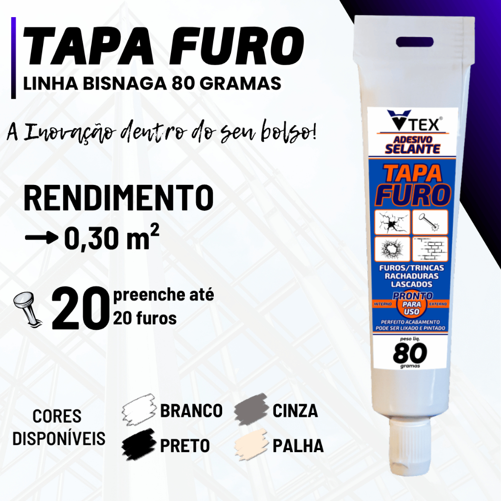 TAPA FURO Trinca Buraco Parede Fácil e Rápido 80gr BRANCO VTEX