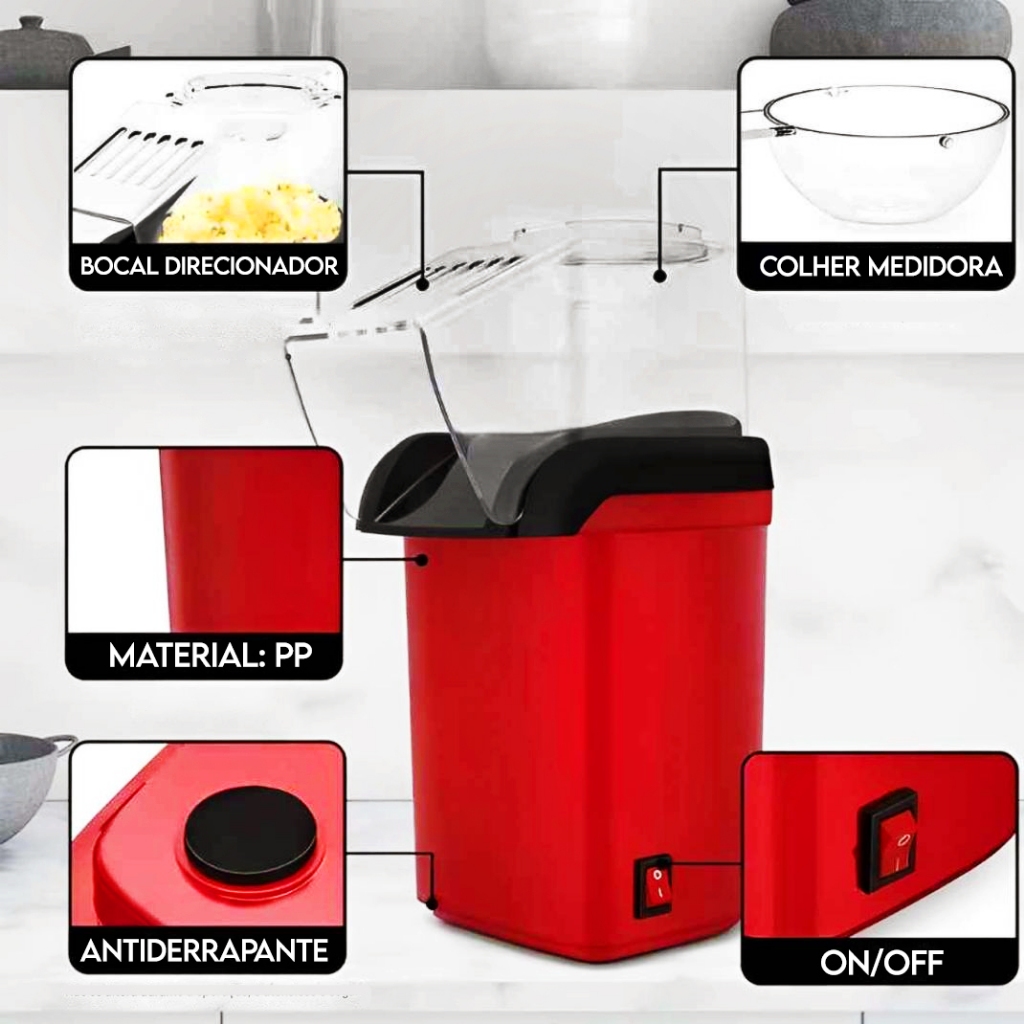 Pipoqueira Elétrica Sem Oleo Ar Quente Vermelha Maquina Fazer Pipoca