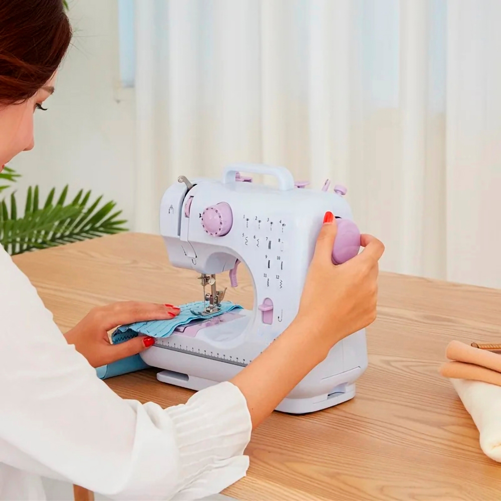 Mini Máquina De Costura Multifuncional Doméstica Compacta 12 Pontos Luz LED Bivolt