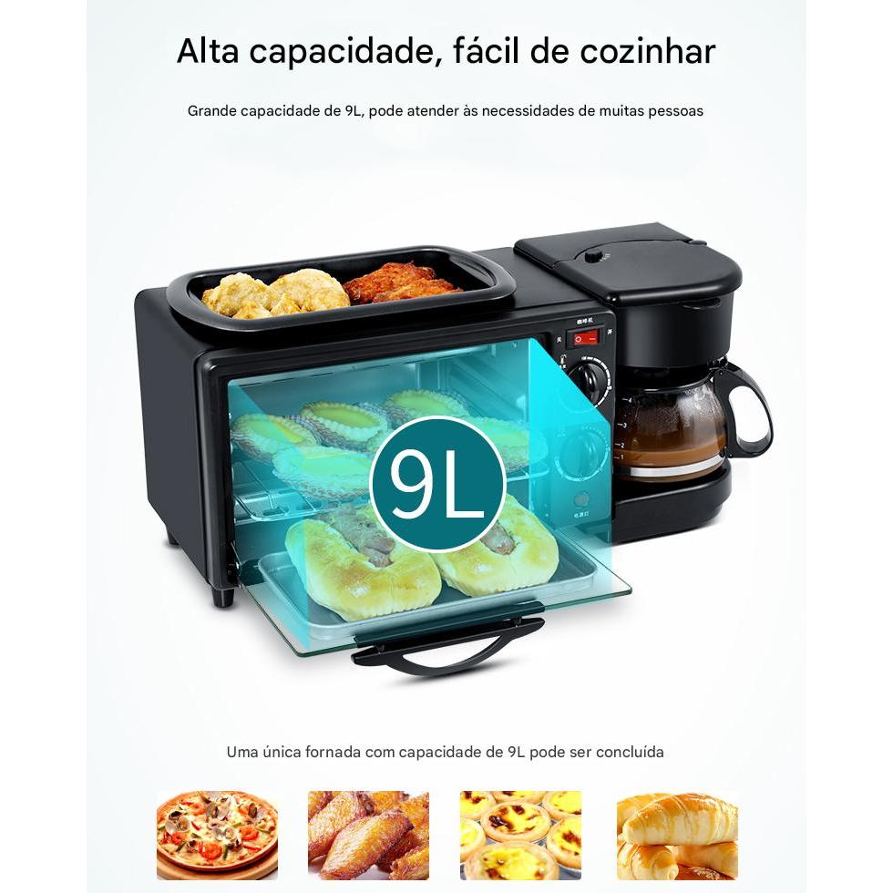 Máquina de Café da Manhã 3 em 1 Forno Cafeteira Grill 2800W Viccoli Premium