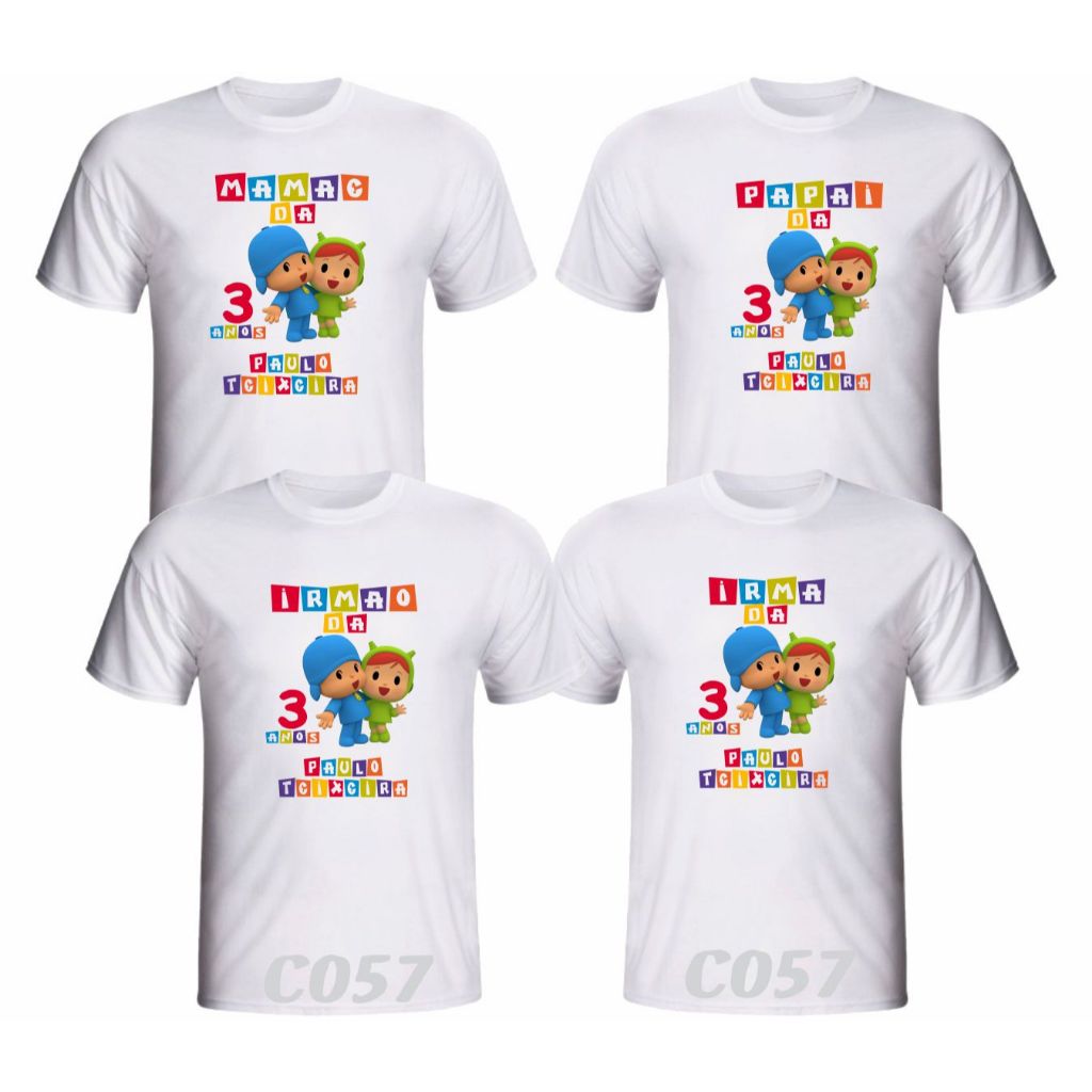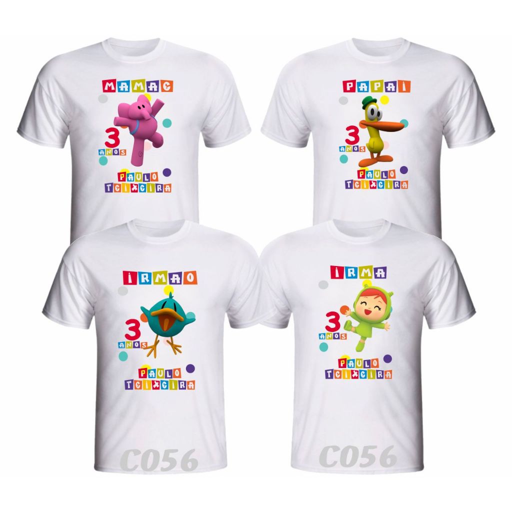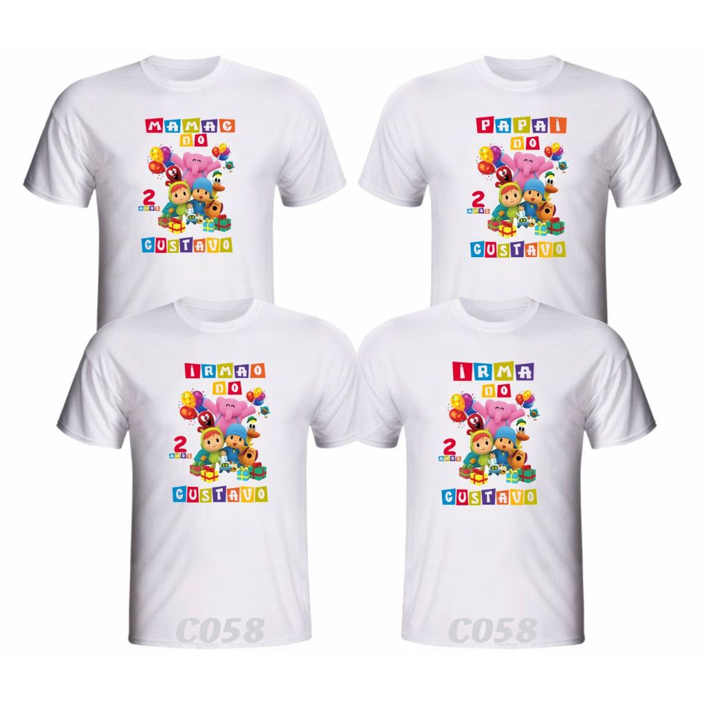 Kit 4 Camisetas com tema " Pocoyo " Personalizada para festa e aniversário