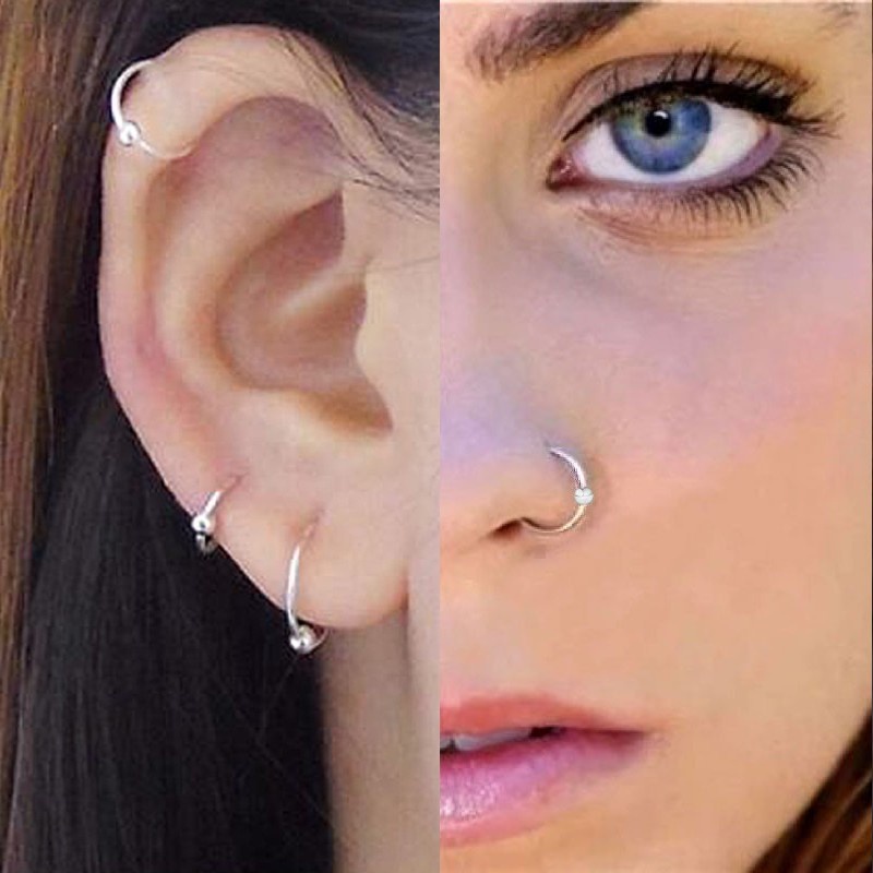 Piercing Argolinha Orelha Nariz Fininha Bolinha Prata 925