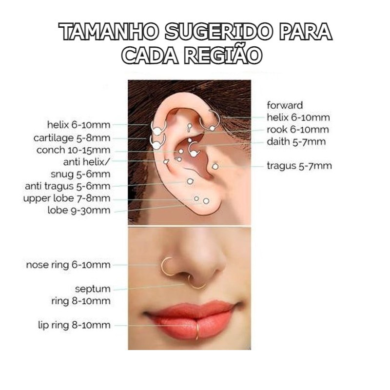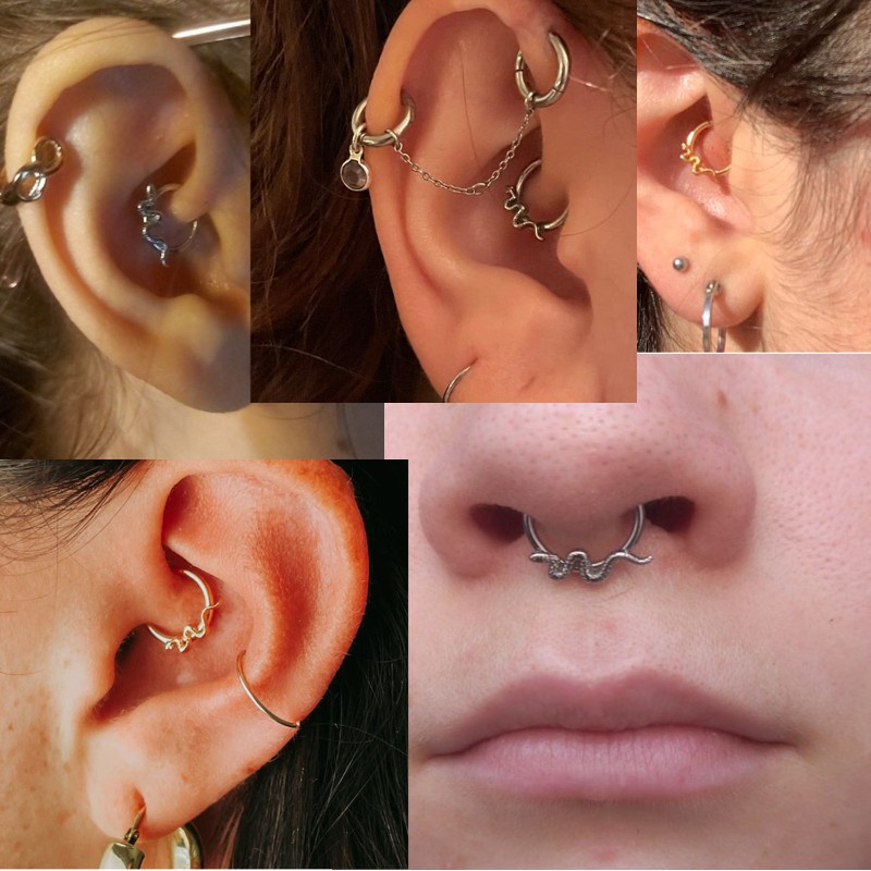 Piercing Orelha Argola Cobra Click Helix Daith Aço