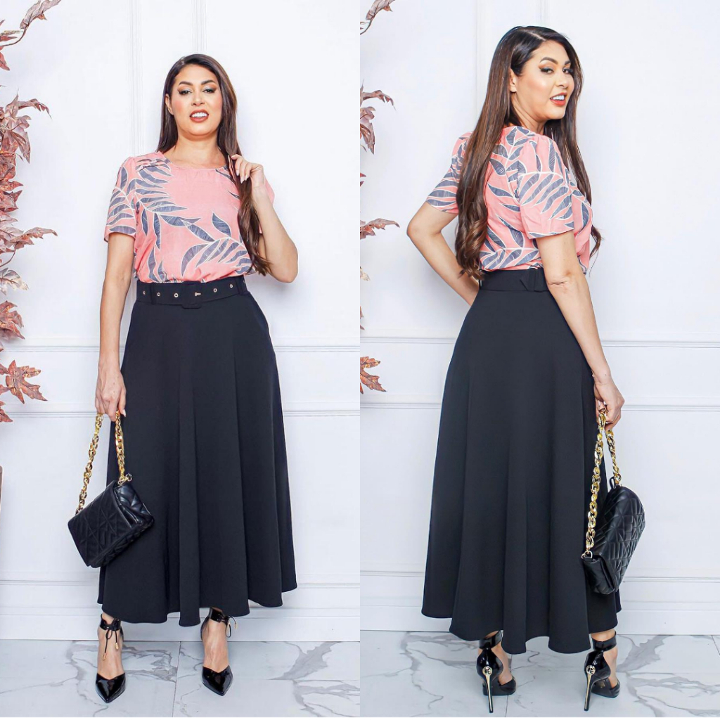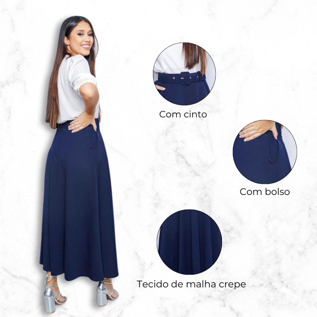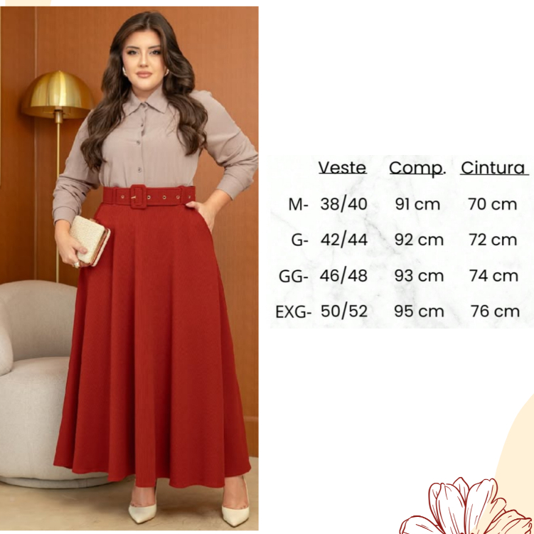 Saia Longa Gode Evangélica Moda Feminina Com Cinto E Bolso Tecido em Malha Crepe P Ao Ex G Plus