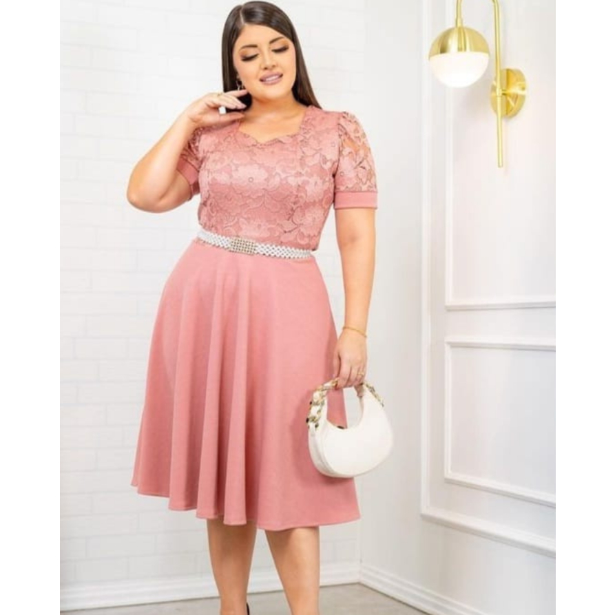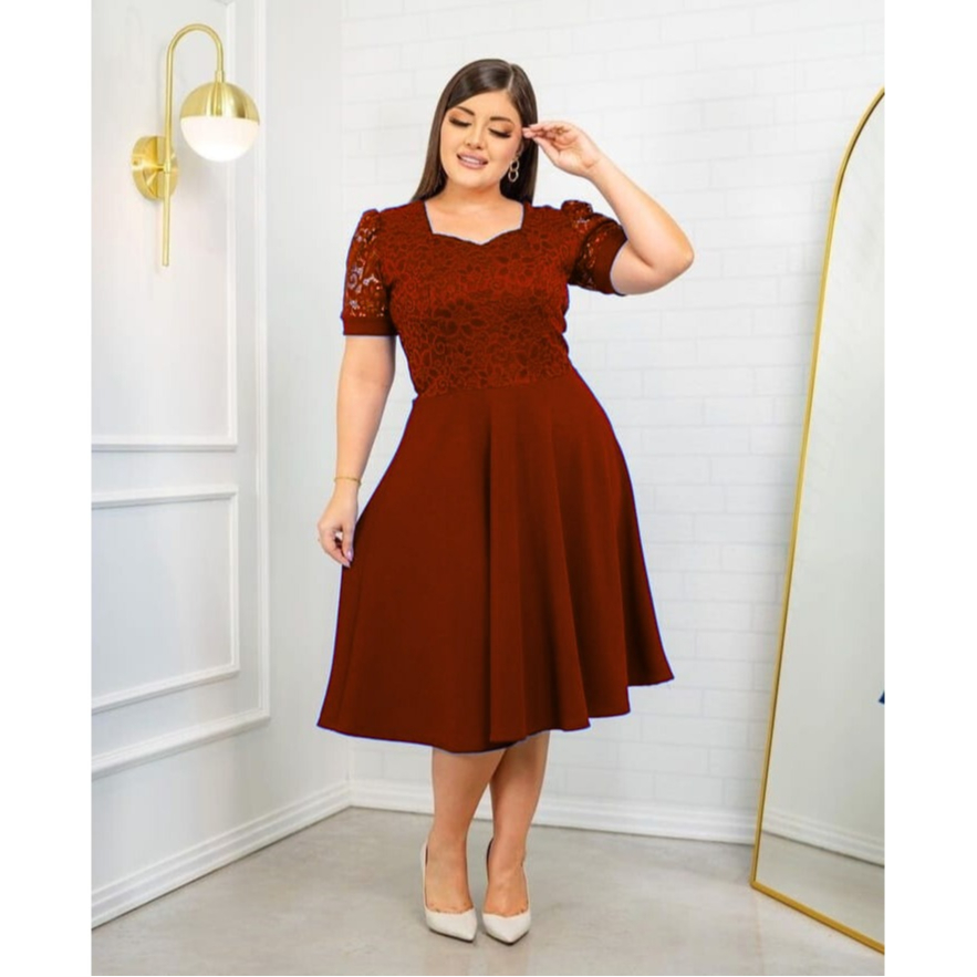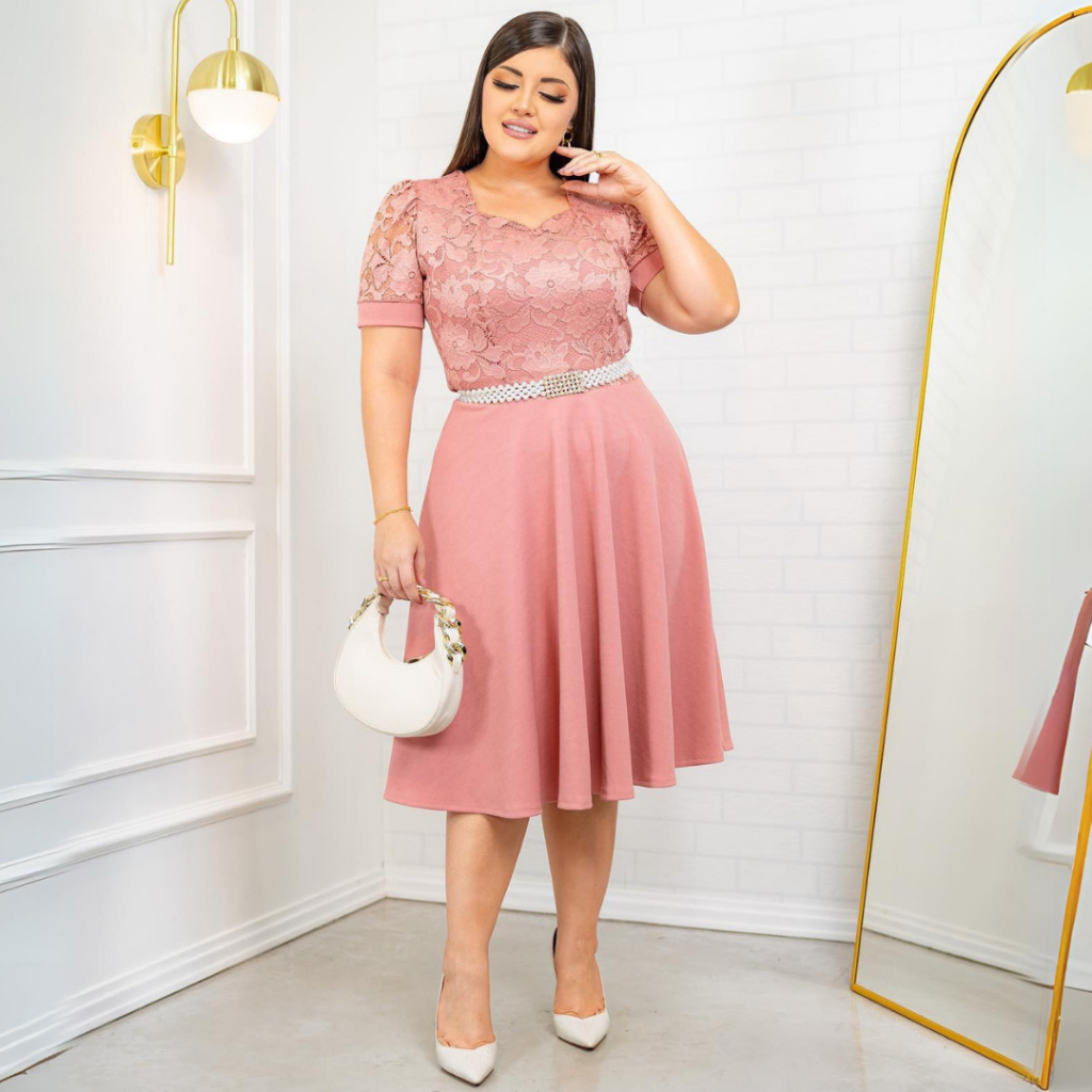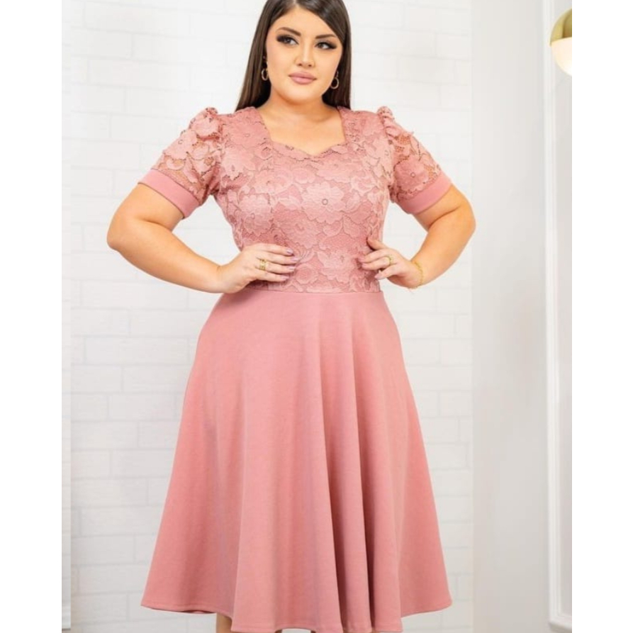 Vestido Rodado Gode Feminino com Renda Manga Princesa Moda Evangélica Malhe Crepe Qualidade Premium