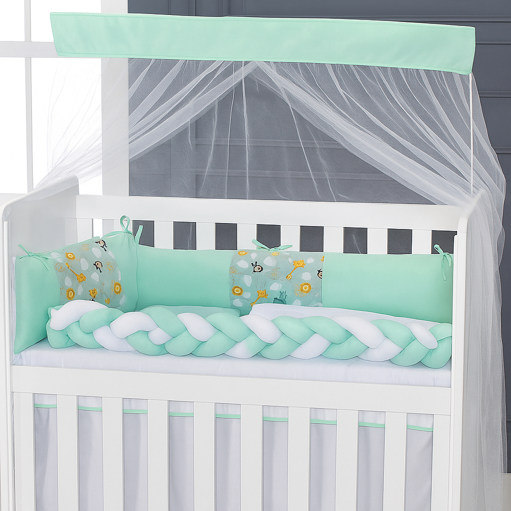 Kit Mini Berço 6 Peças Menino Completo com Mosquiteiro A Pronta Entrega