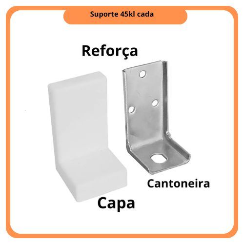 Kit 10 Cantoneira Com Capa Reforçada aéreo Metálica aço para armários e gabinetes suporte peso 45KG
