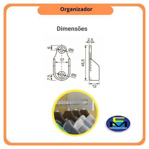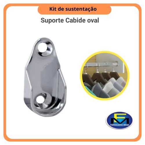kit 10 Suporte de Cabide Oval reforçado de Zamak Suporte lateral Oval