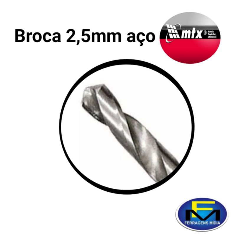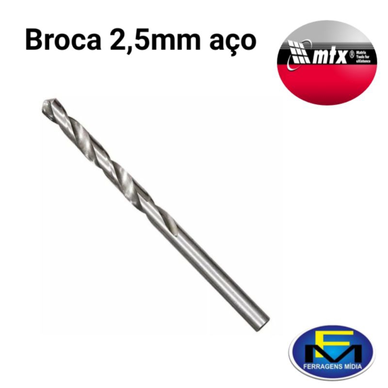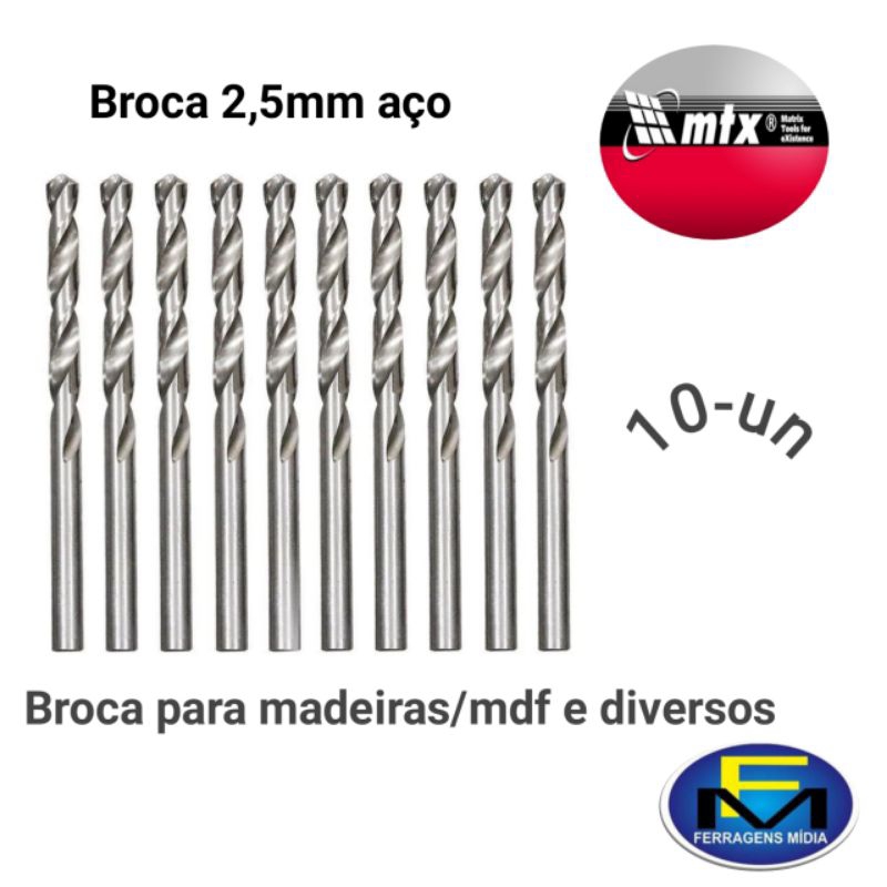 kit 10 broca aço rápido polido 2,5mm Mtx própria para mdf e metal e madeiras