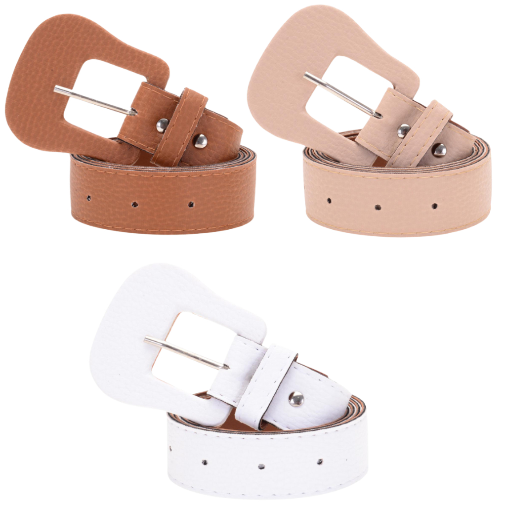 Kit 3 Cintos Feminino Plus Size 1,40cm Fivela Modelo Violão Encapada Reforçada Minimalista Acessório