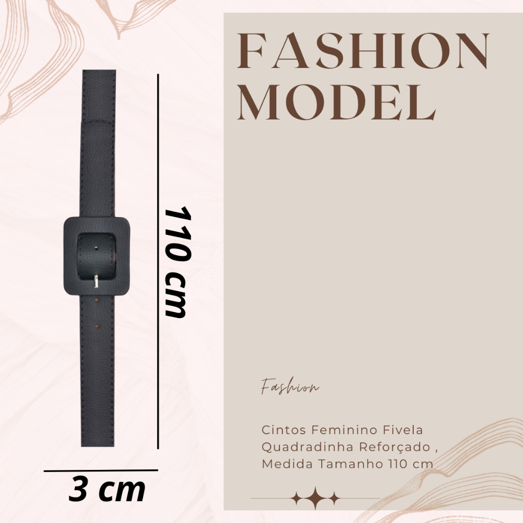 Cintos Feminino 1,10 cm Fivela Quadradinha Modelo maria Diversas Cores Couro Sintético Reforçado