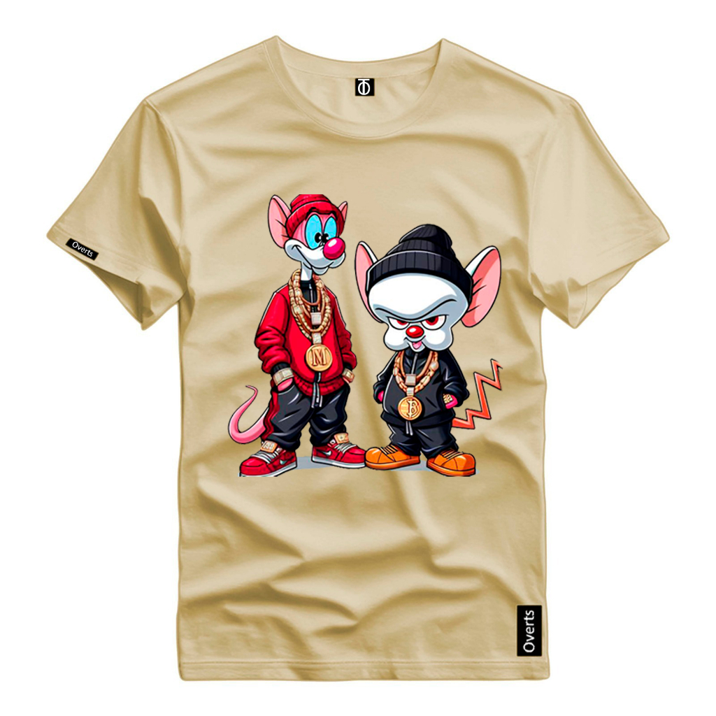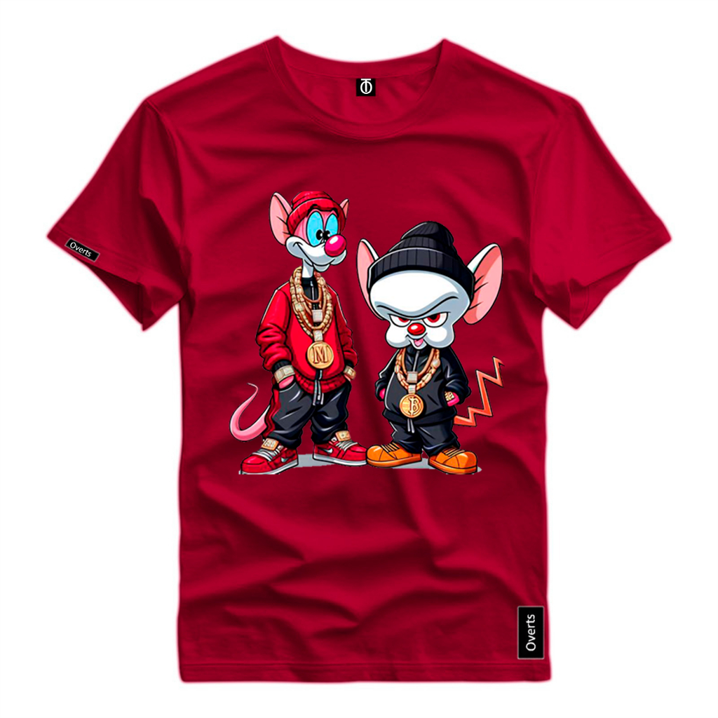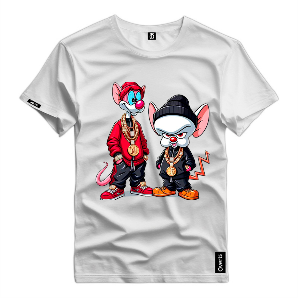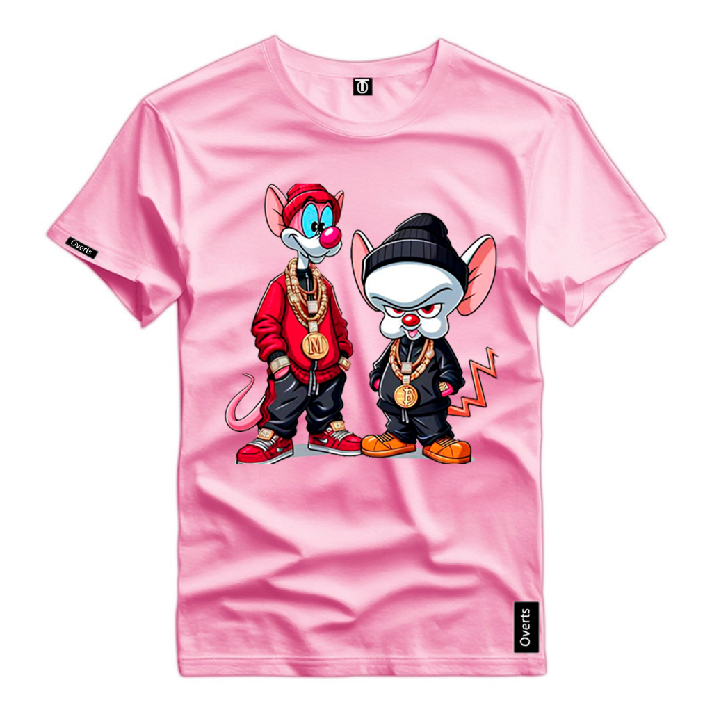 Camiseta Masculina Desenho Pink e Cerebro Ratos Estilosos Camisa Estampada 100% Algodao Top