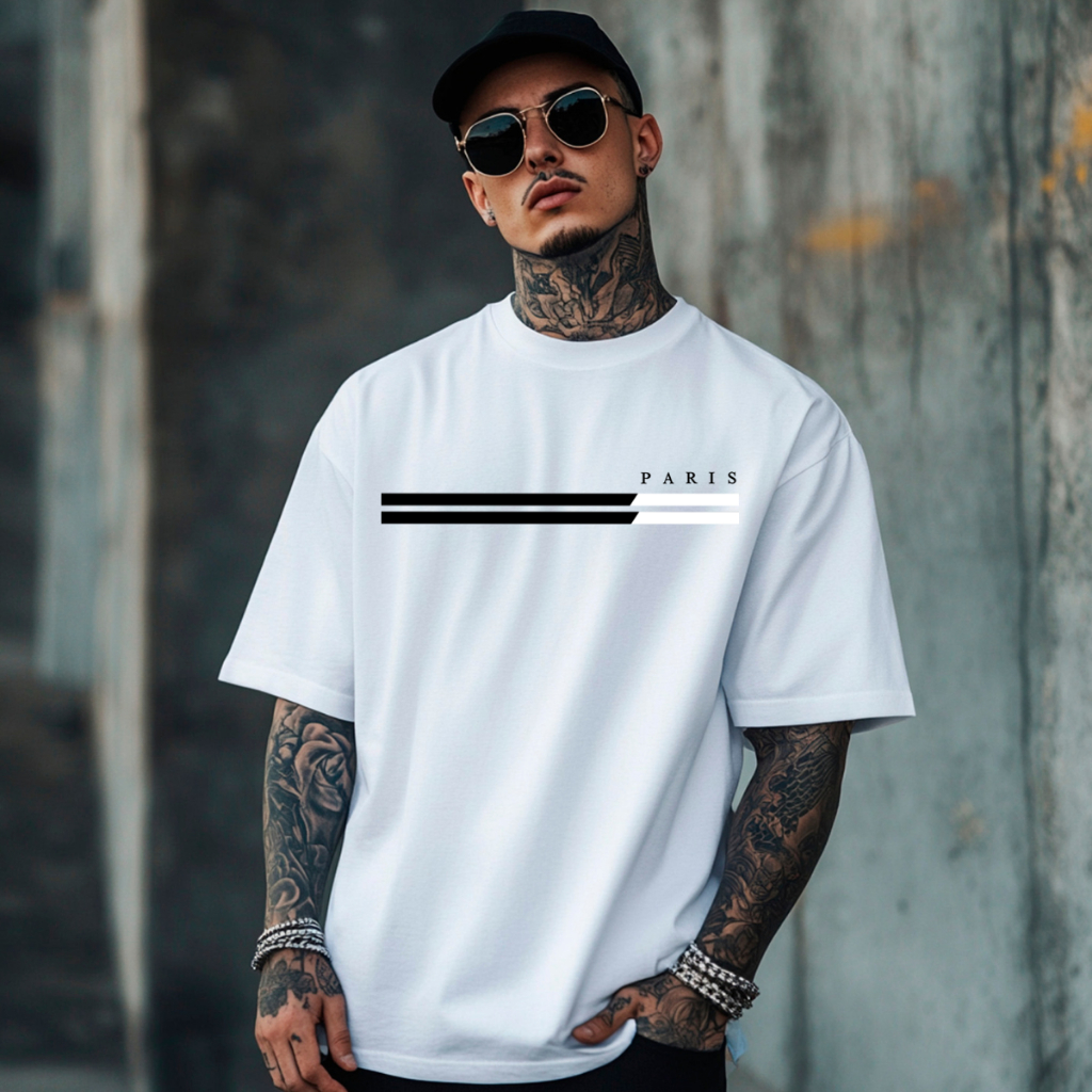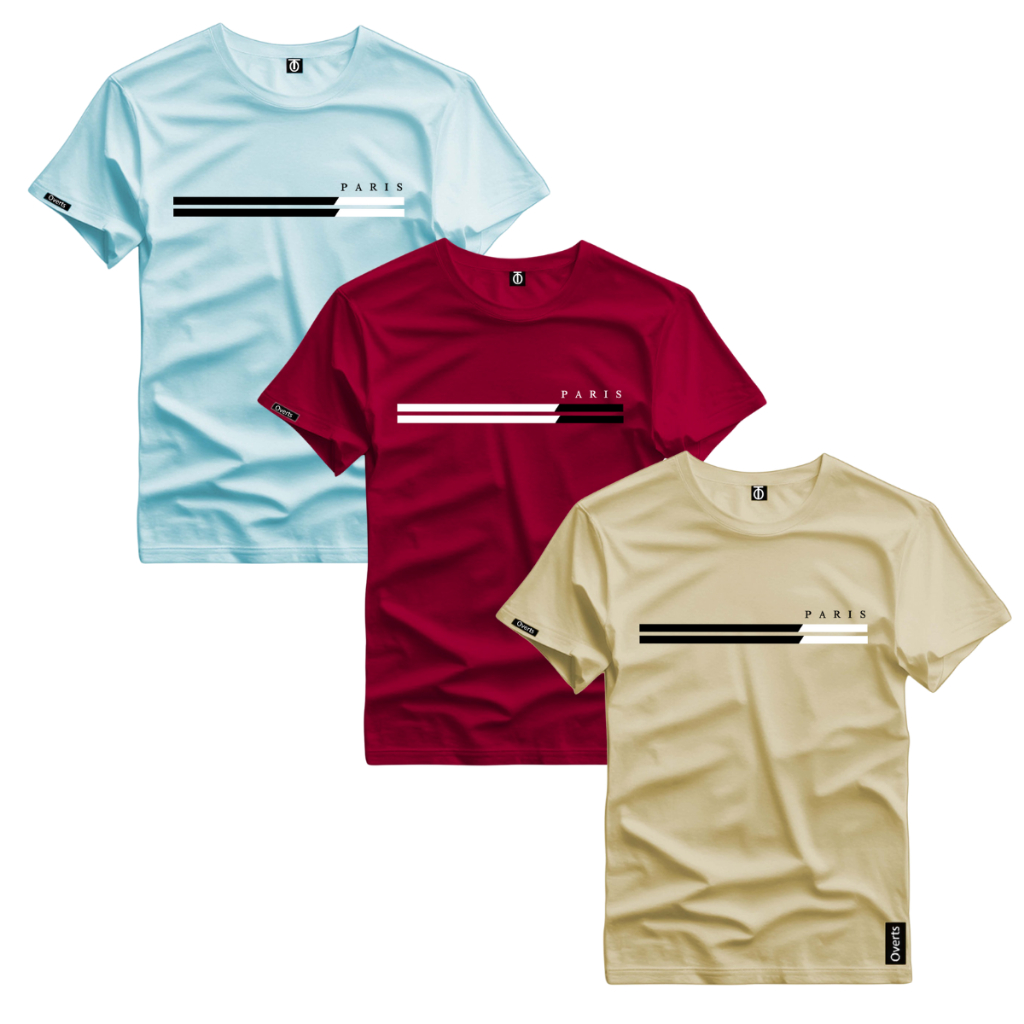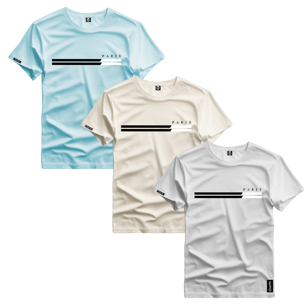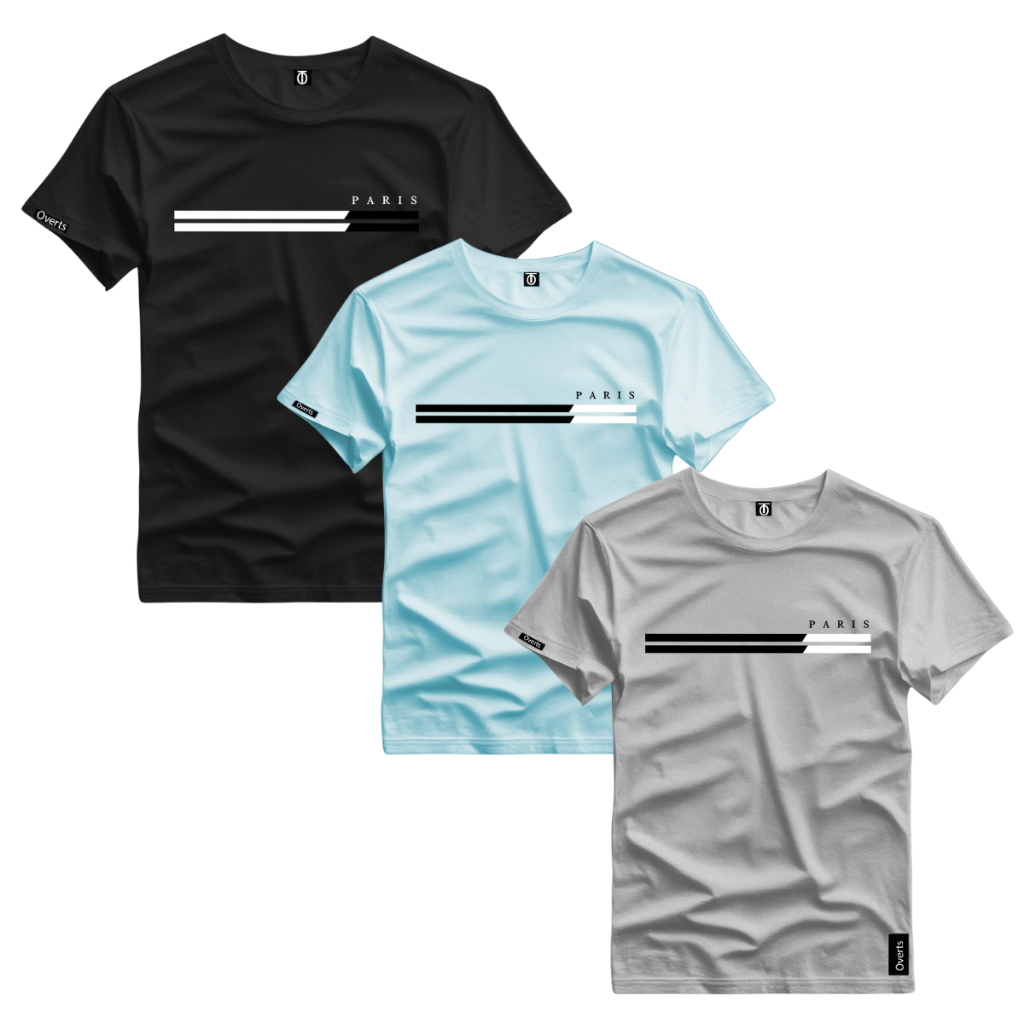 Kit 3 Camiseta Masculina Estampada Paris Duas Listras Style Tendencia Top Camiseta Malha Algodao