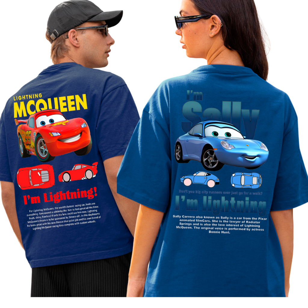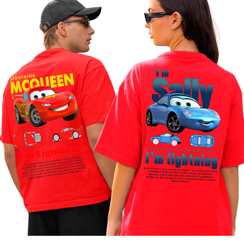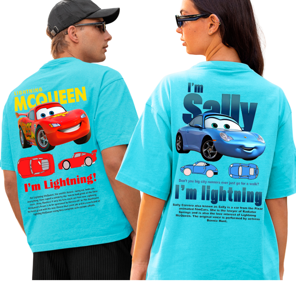 Kit 2 Camiseta Camisa Casal Estampado Relampago Mcquen + Sally Carros Lindos Algodao Unissex