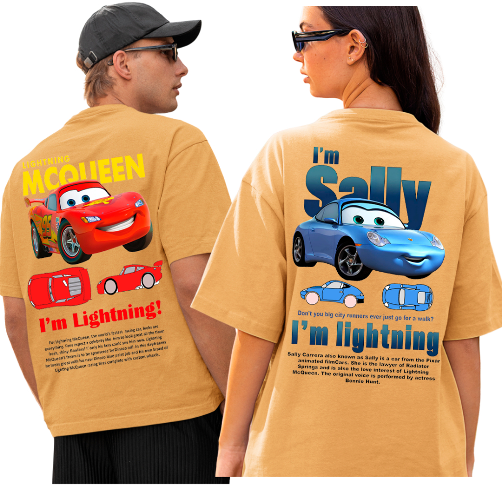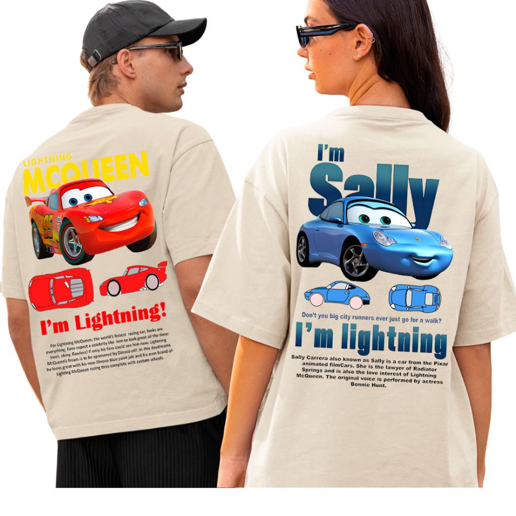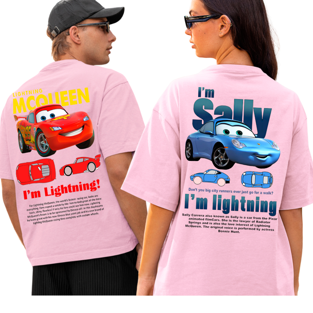 Kit 2 Camiseta Camisa Casal Estampado Relampago Mcquen + Sally Carros Lindos Algodao Unissex