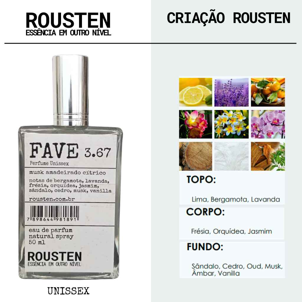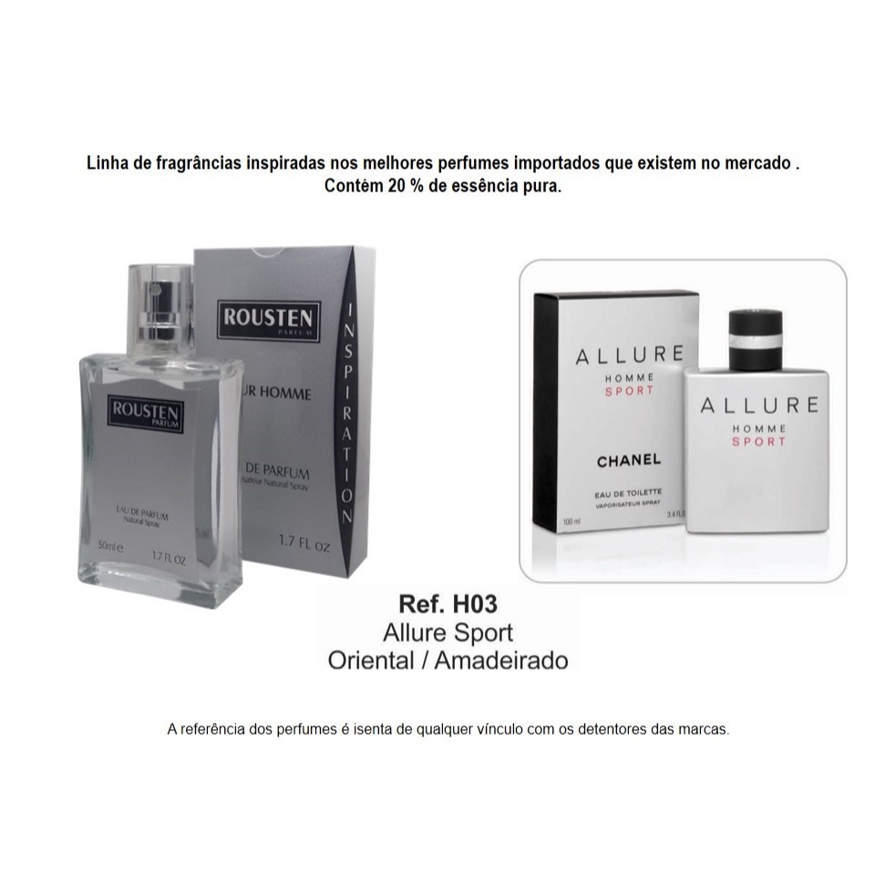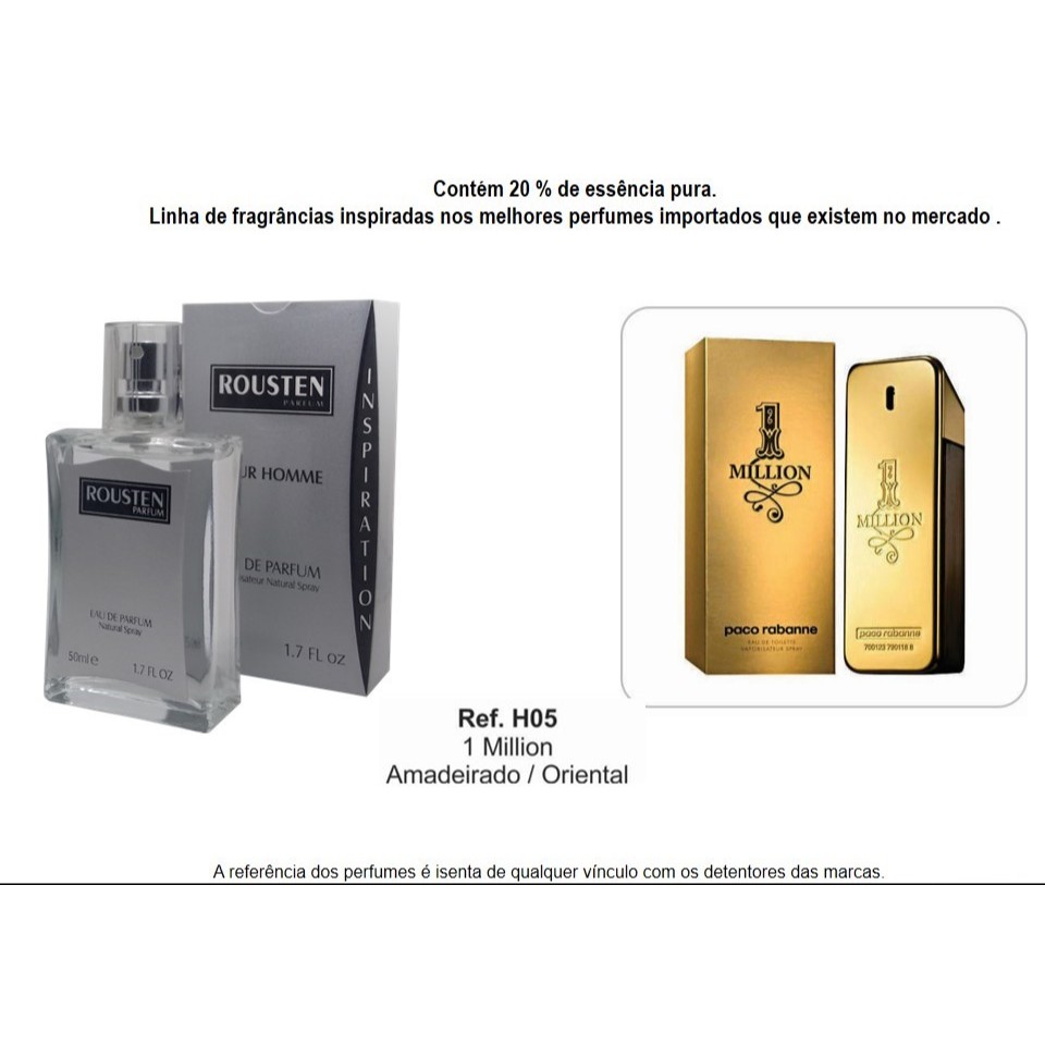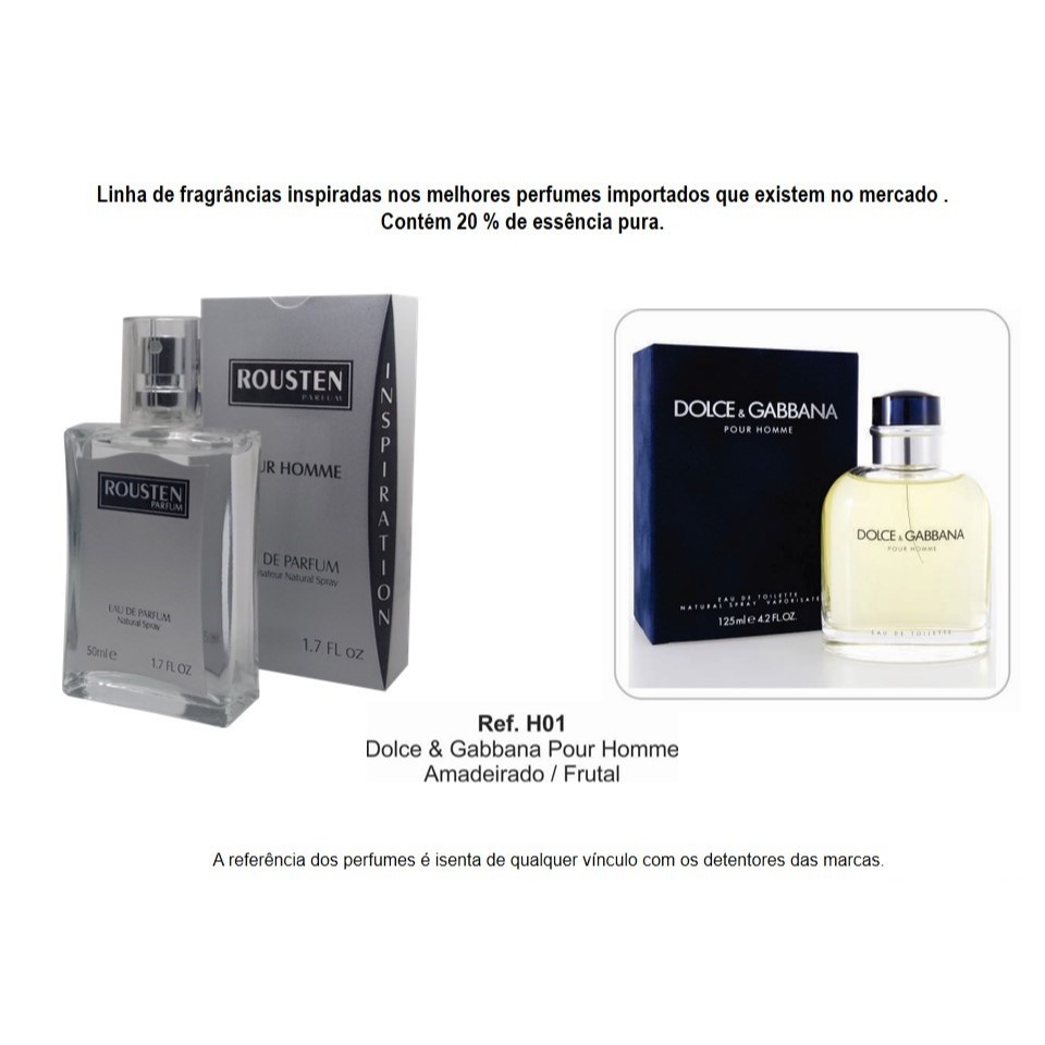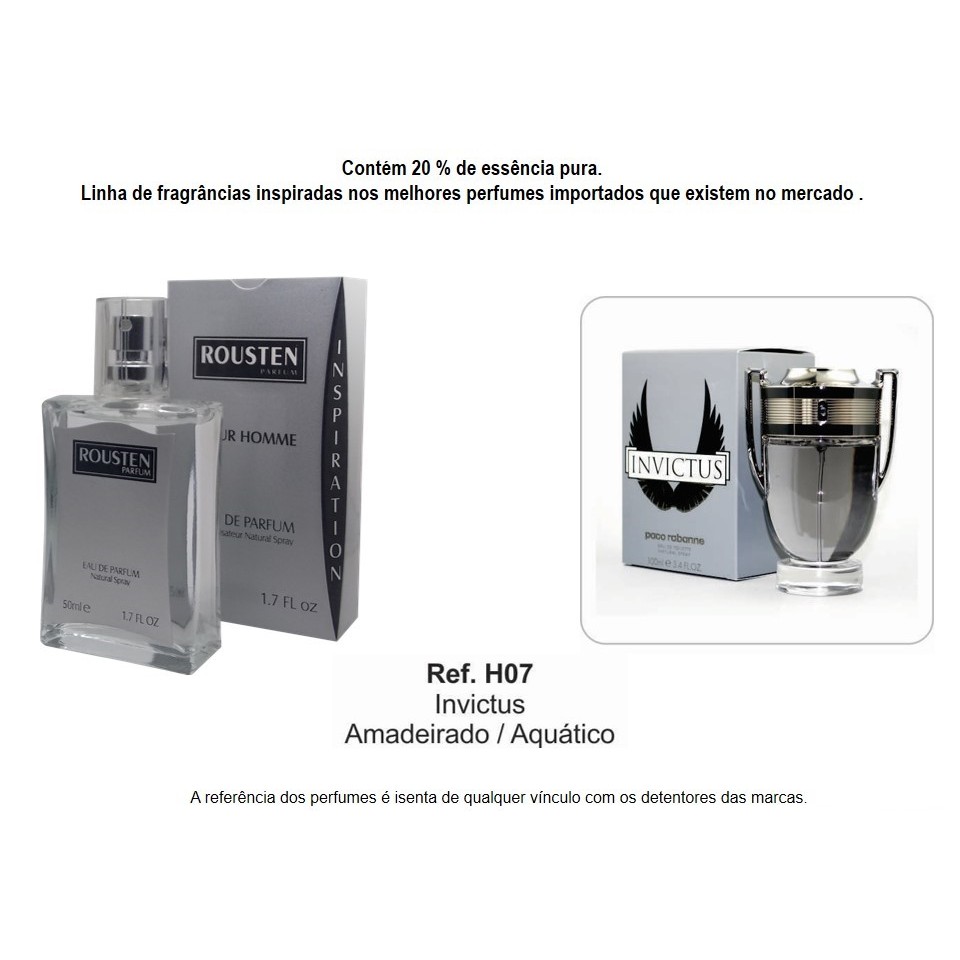 PERFUME MASCULINO 50 ML INSPIRAÇÃO IMPORTADOS 20% ESSÊNCIA PURA LONGA DURAÇÃO ROUSTEN