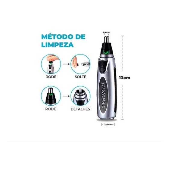 Máquina para Aparar Pelos de Nariz e Orelha - Nose Ear Hair Trimmer Silenciosa e Ideal para Viagens