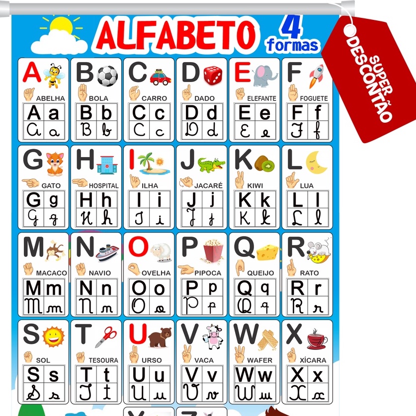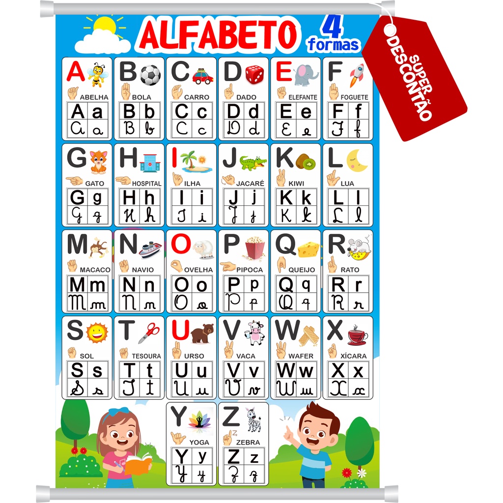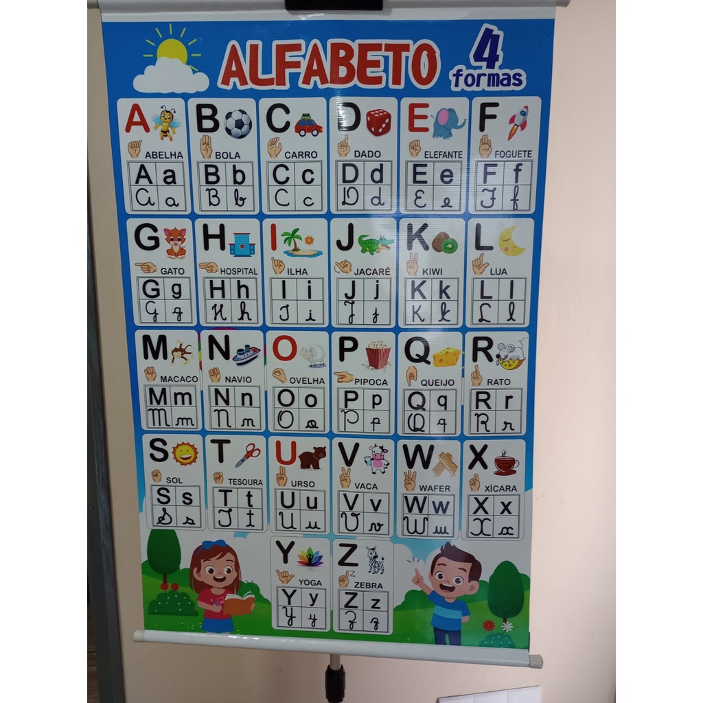 Banner escolar ALFABETO 4 FORMAS Alfabetização Educação infantil recurso pedagógico alfabeto ilustra