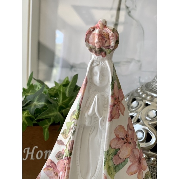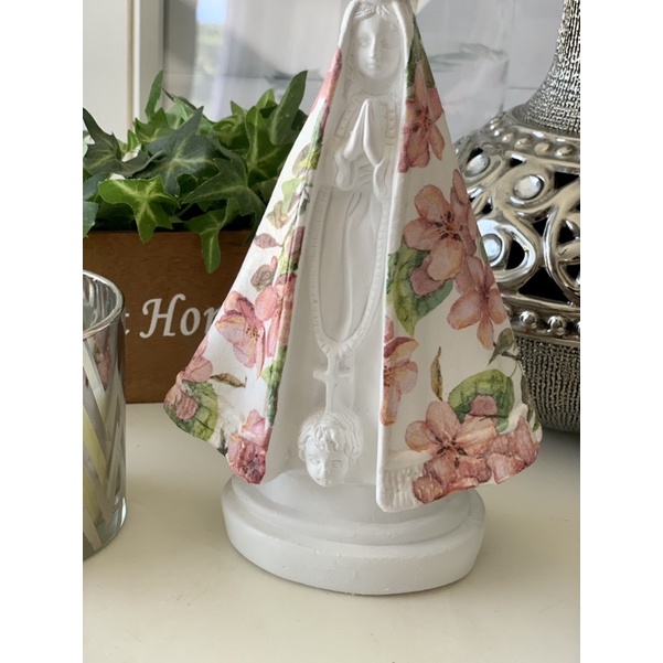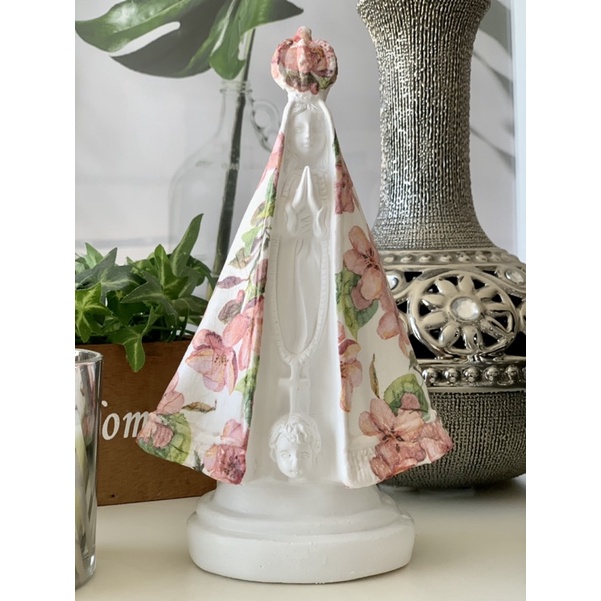 imagem de nossa senhora aparecida 20 cm gesso manto rosas