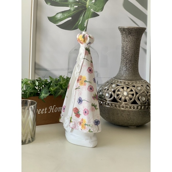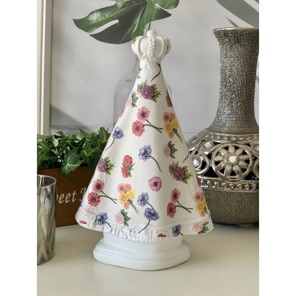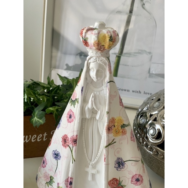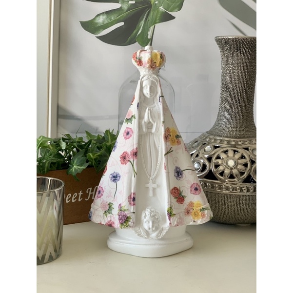nossa senhora aparecida 25 cm manto mini Flores coloridas rosas gesso decorada