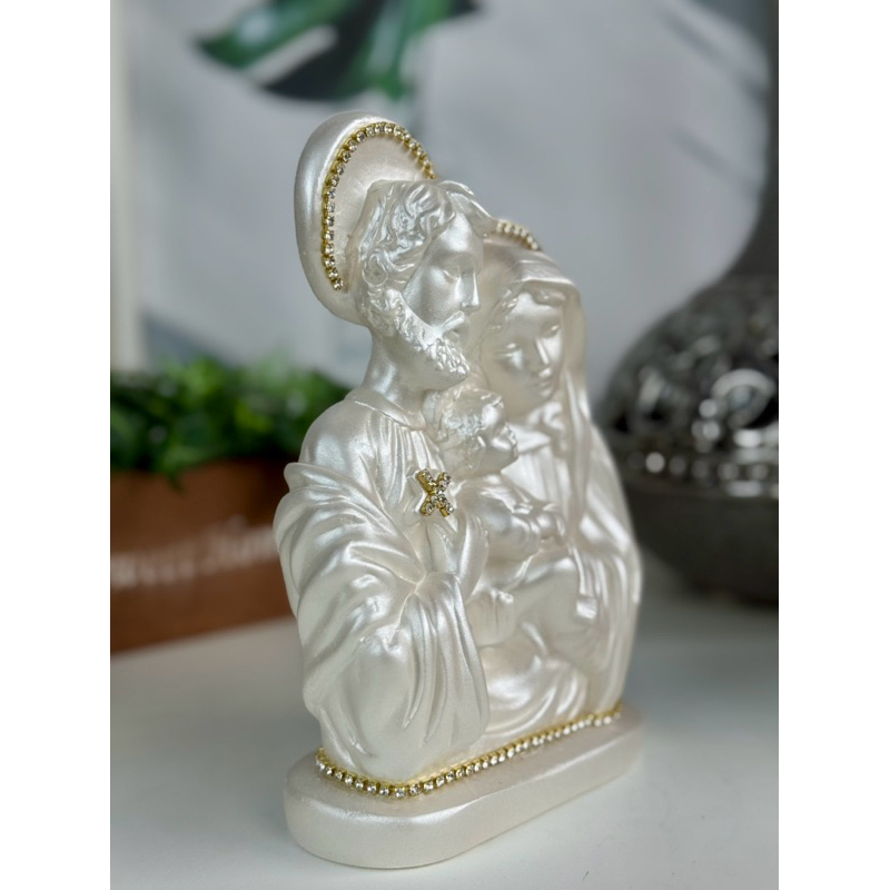 imagem sagrada família manto branco perolado detalhes dourado strass gesso