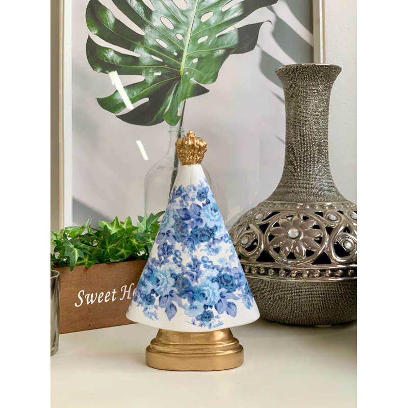 nossa senhora aparecida 22 cm manto de flor azul detalhes dourado gesso
