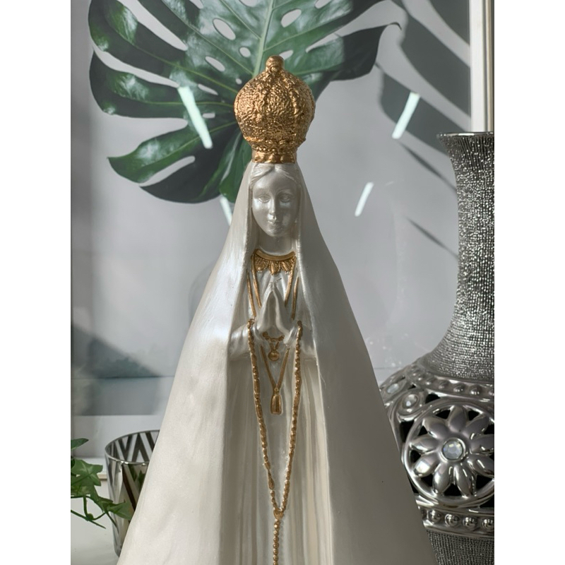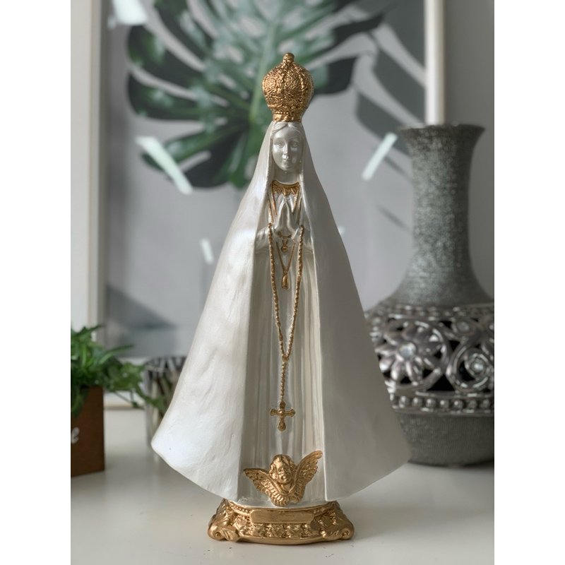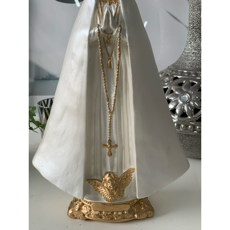 nossa senhora aparecida 30 cm manto liso perolado detalhes dourado gesso