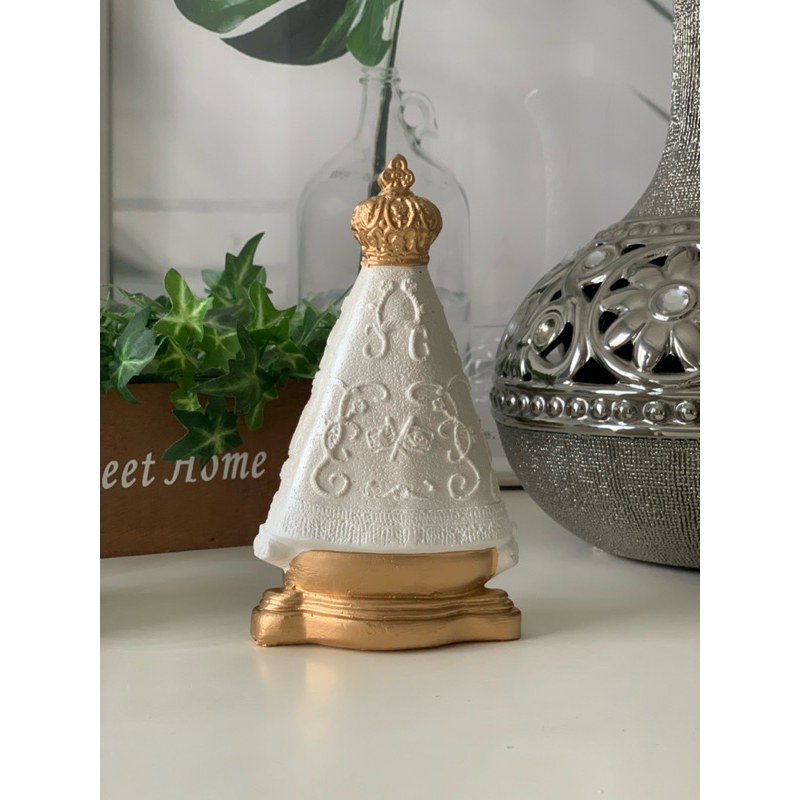 imagem nossa senhora aparecida baby infantil 15cm branco perolado decorada dourado gesso