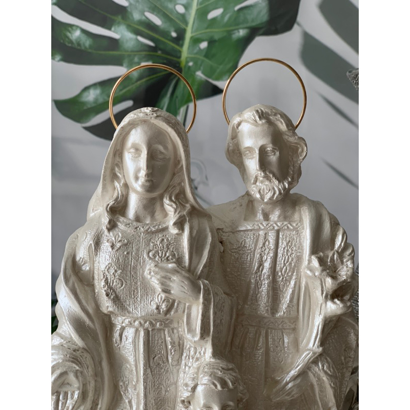 sagrada família 30cm resplendor aureola folheada imagem em pé branco perolado gesso