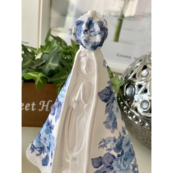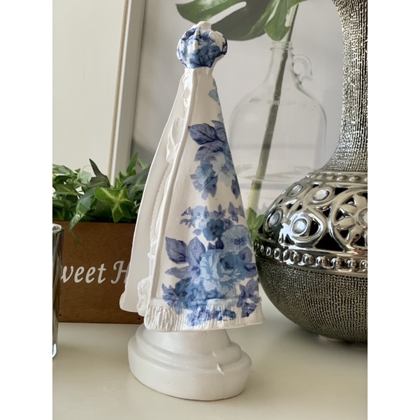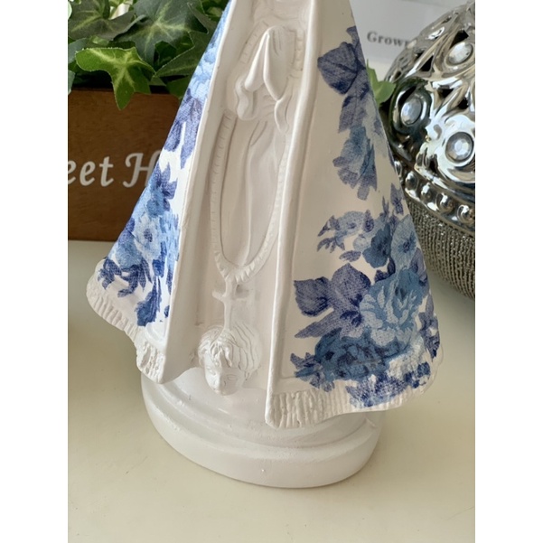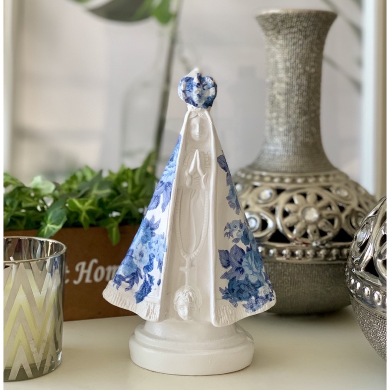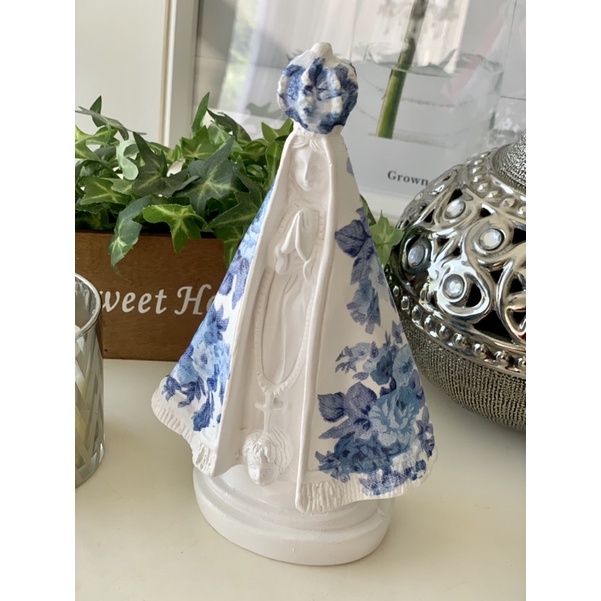 Nossa Senhora Aparecida manto azul flores 20 cm gesso