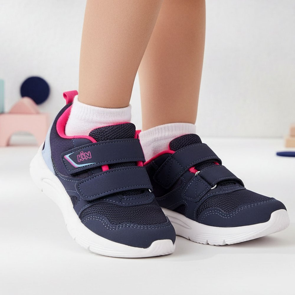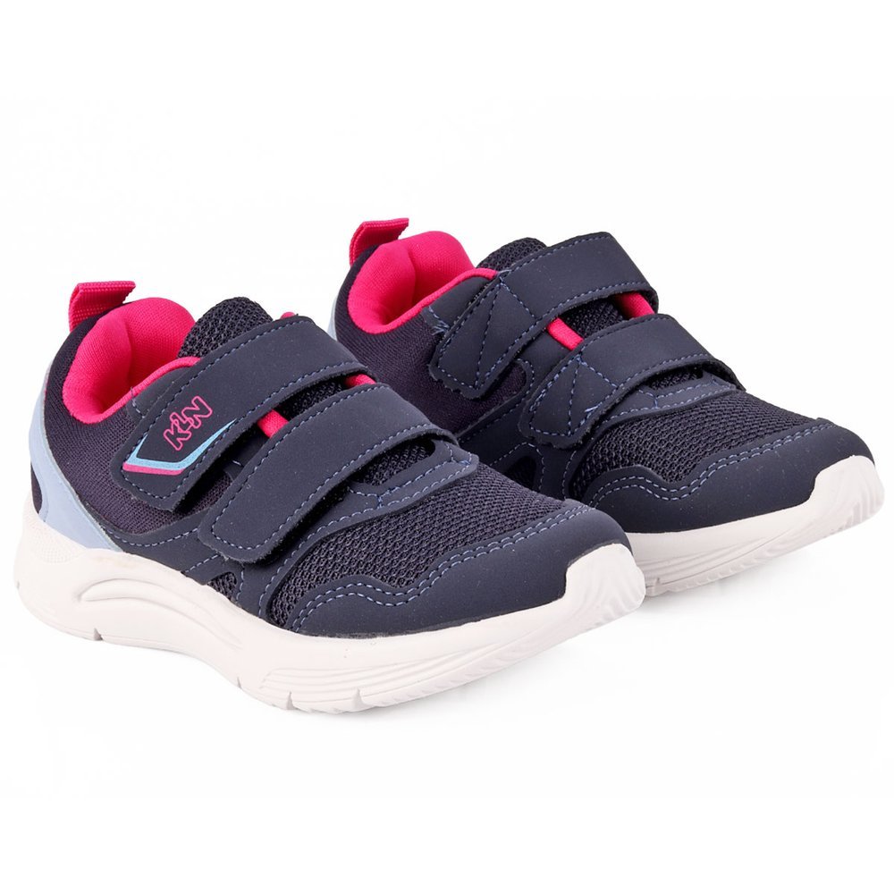 Tênis Infantil Menina Klin Original New Sport Marinho e Rosa com Velcro Duplo Calce Fácil Anatômico