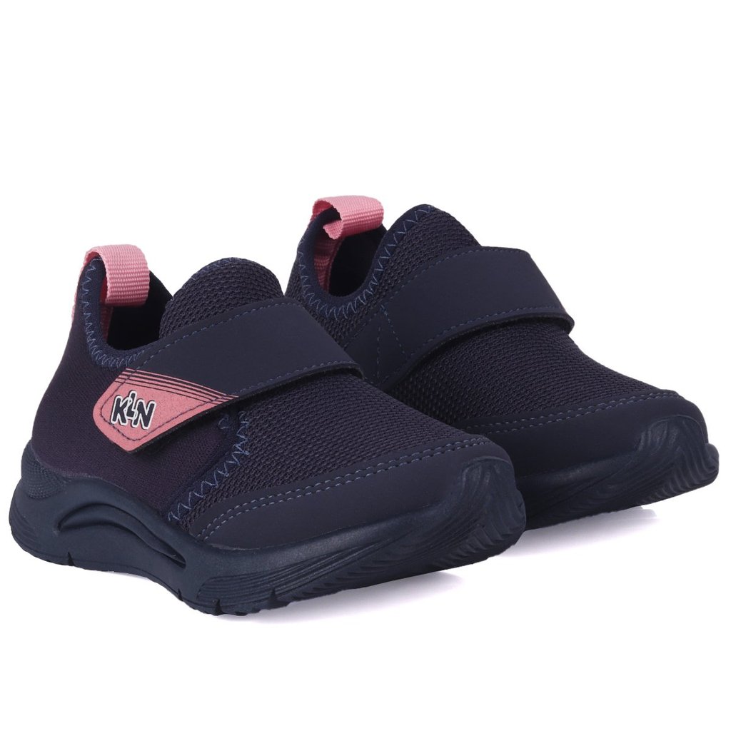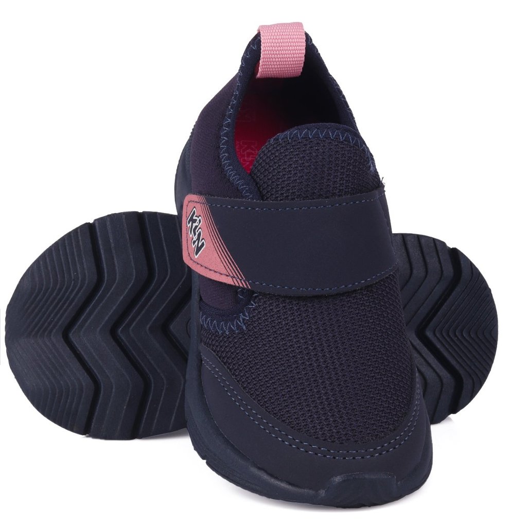 Tênis Infantil Feminino Klin Slip-On Calce Fácil Leve e Respirável - Marinho e Rosa