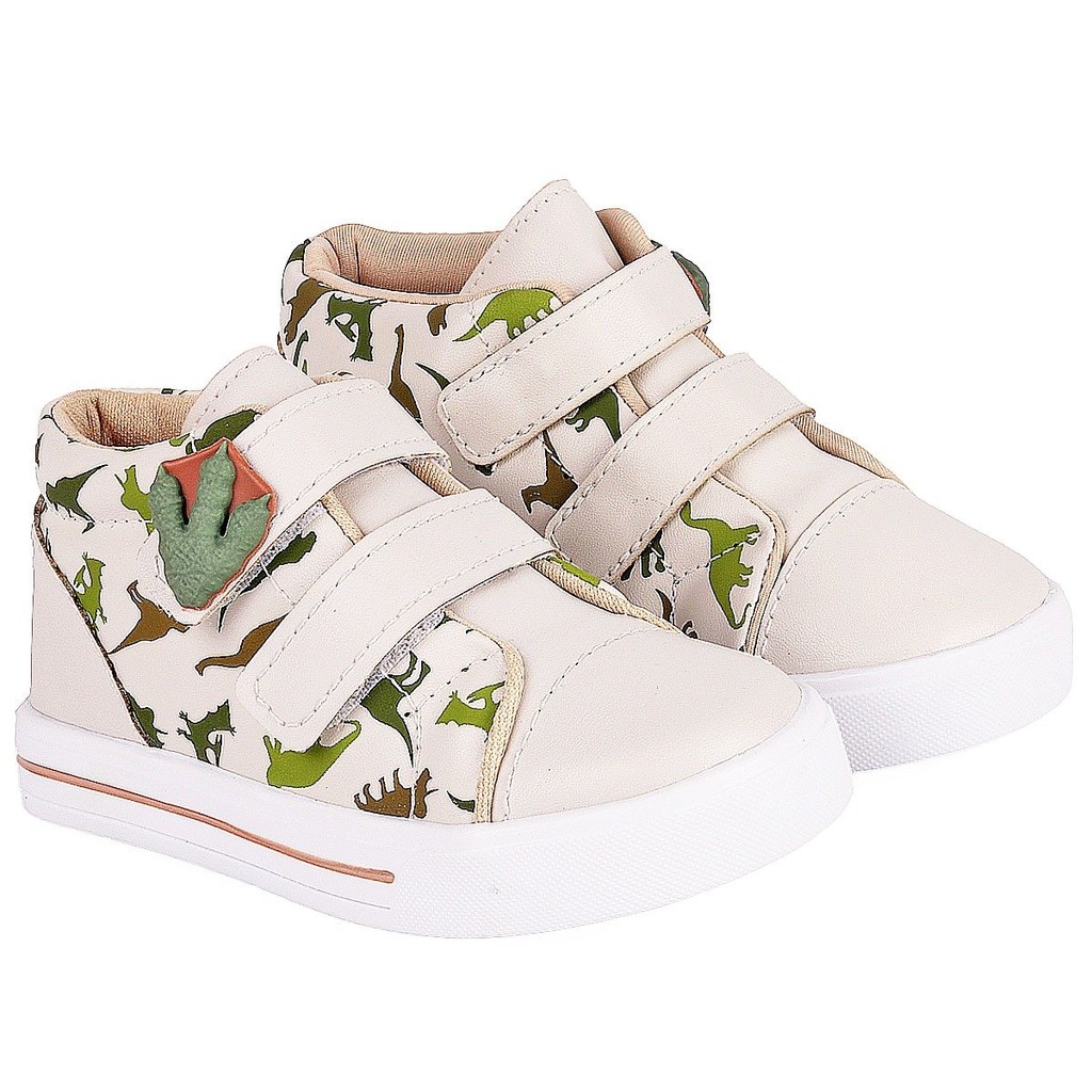 Tênis Infantil Menino Cano Médio Bee Happy Dinossauro Calce Fácil Velcro Duplo - Off White
