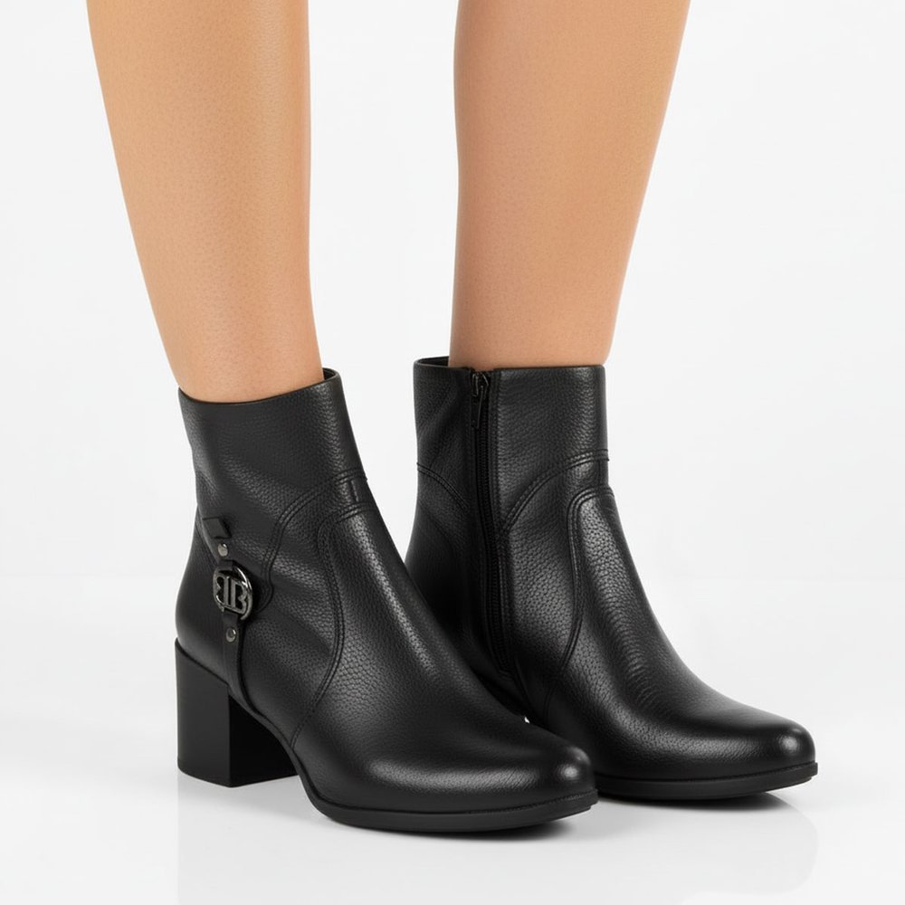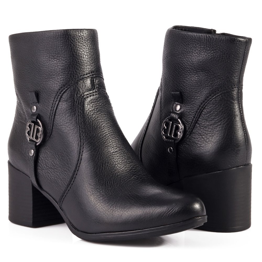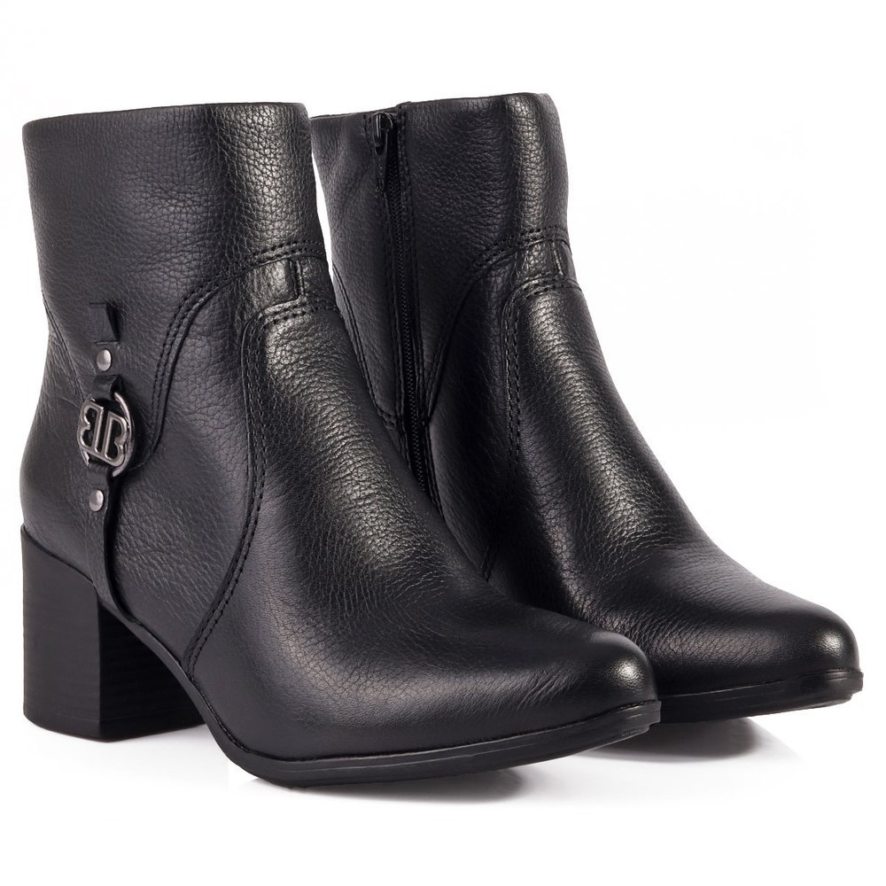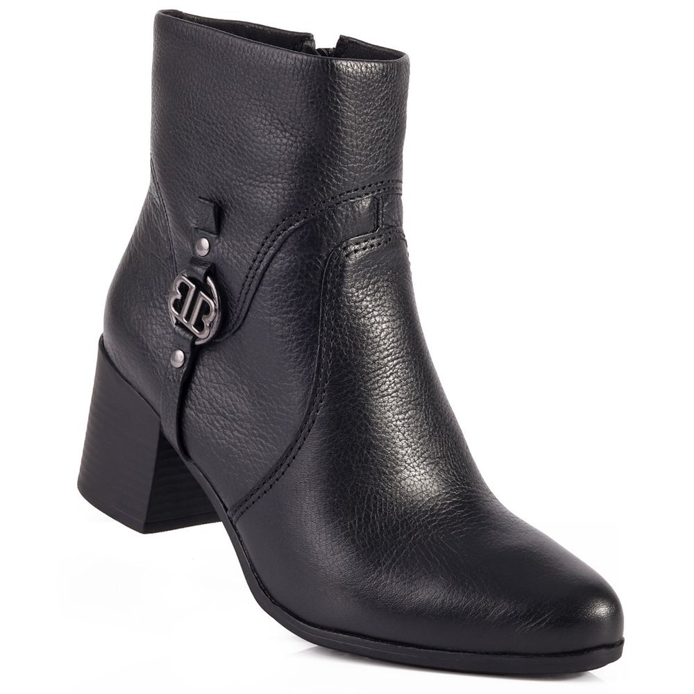 Bota Feminina Bottero Burnish Cano Baixo Couro Preto com Fivela Monograma e Salto Bloco
