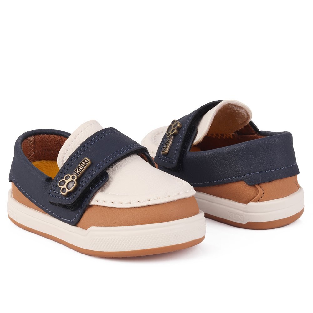 Sapato Infantil Meninos Klin Original Flyer Azul Marinho e Caramelo – Casual Batizado Premium