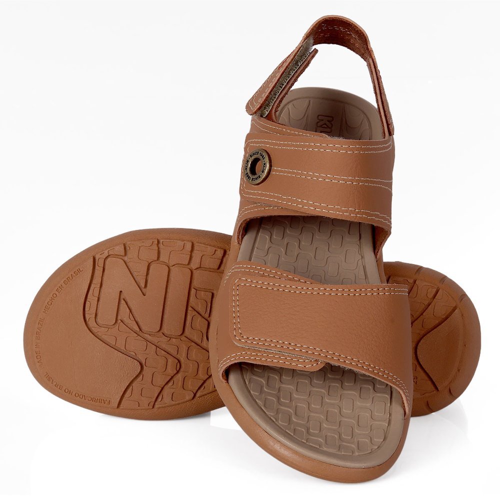 Sandália Papete Infantil Klin Menino Original Confortável Anatômica Velcro Caramelo Calce Fácil