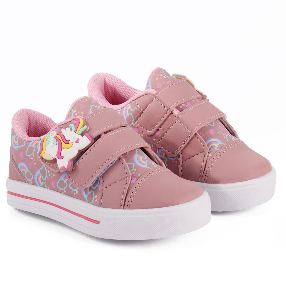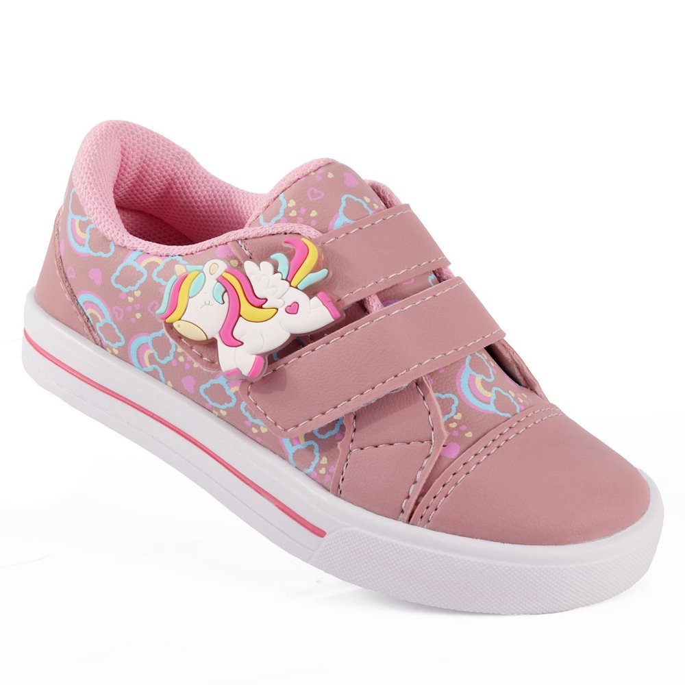 Tênis Menina Infantil Unicórnio Nude Sapatinho Blogueirinha Calce Fácil Velcro