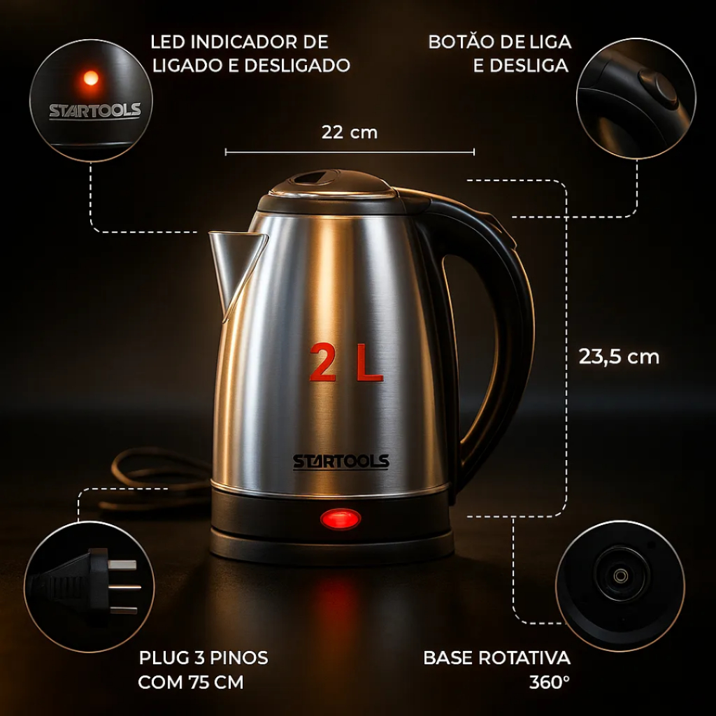 Chaleira 2 Litros + Cafeteira Prensa Francesa 300ml Jarra Elétrica Café Automática 127V 220V Inox