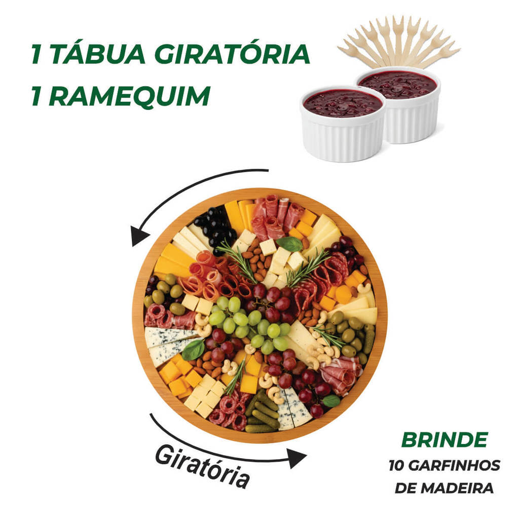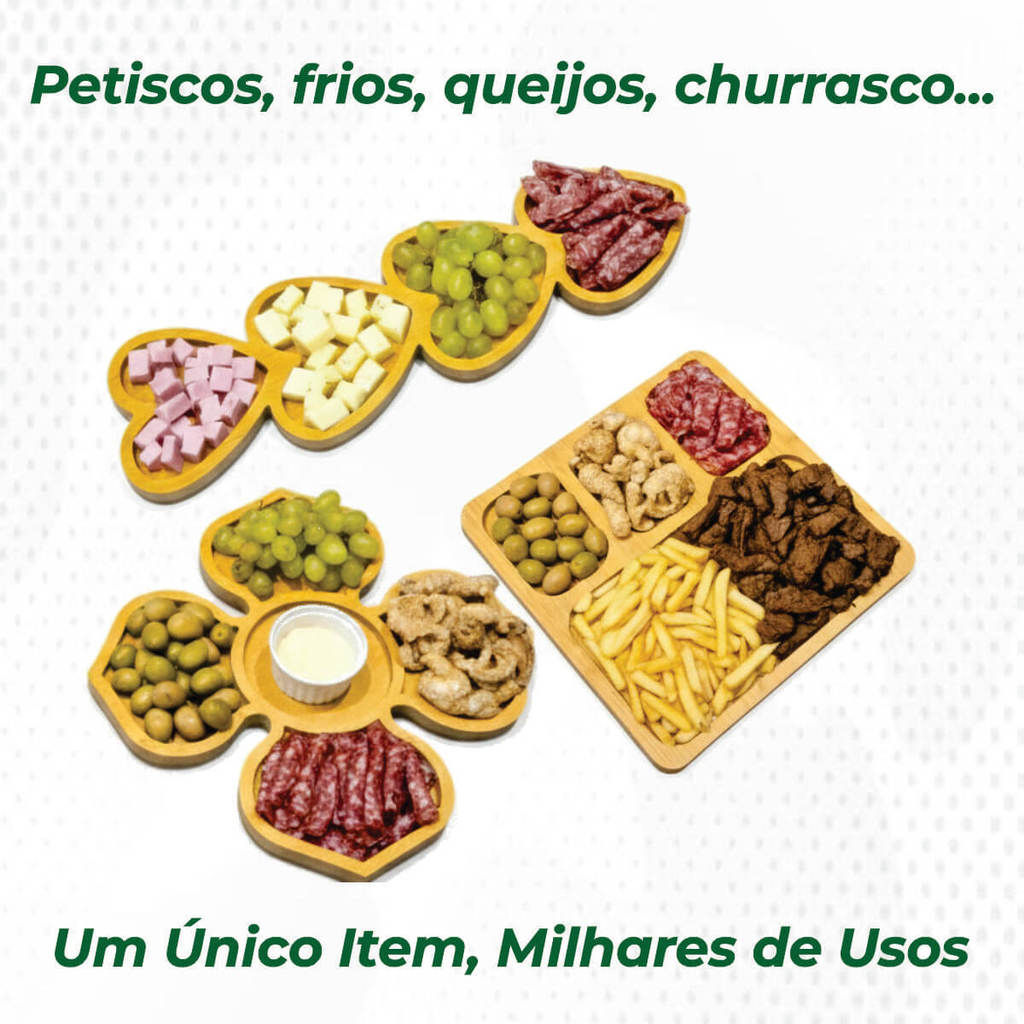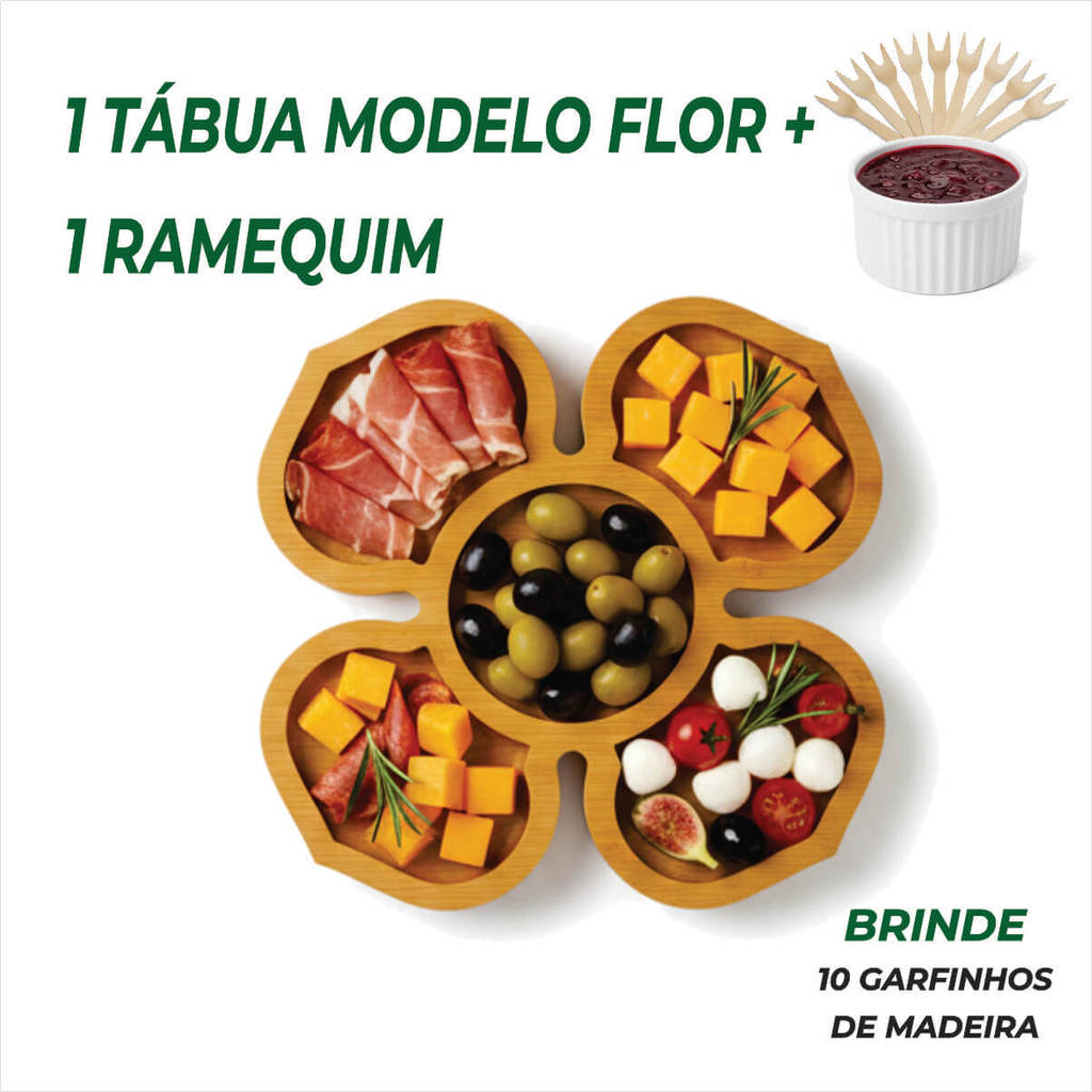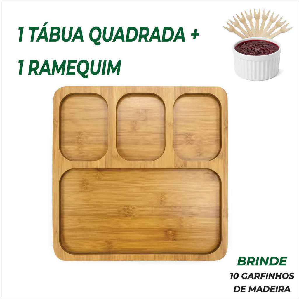 Petisqueira de Madeira + Ramequim + 10 Garfinhos Brinde – p/ Petiscos Frios e Queijo
