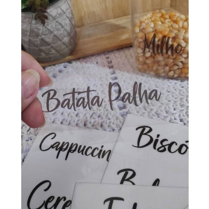 Kit 24 Adesivos Minimalista Etiqueta para Potes em Vinil Transparente para Organizar Cozinha Mantimentos 9x4cm