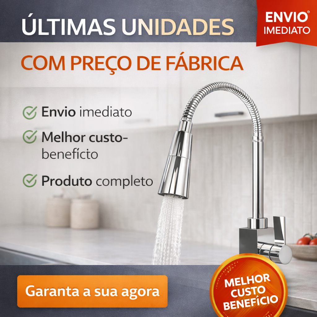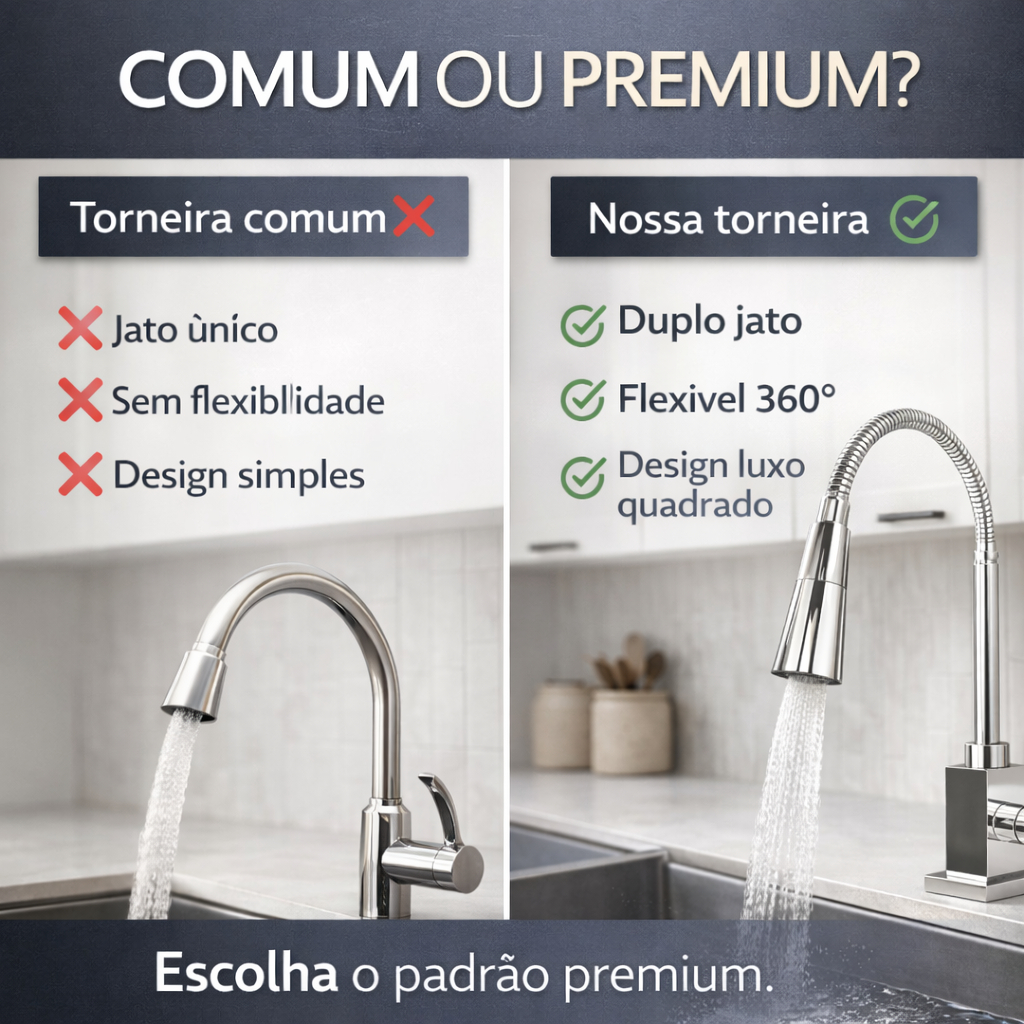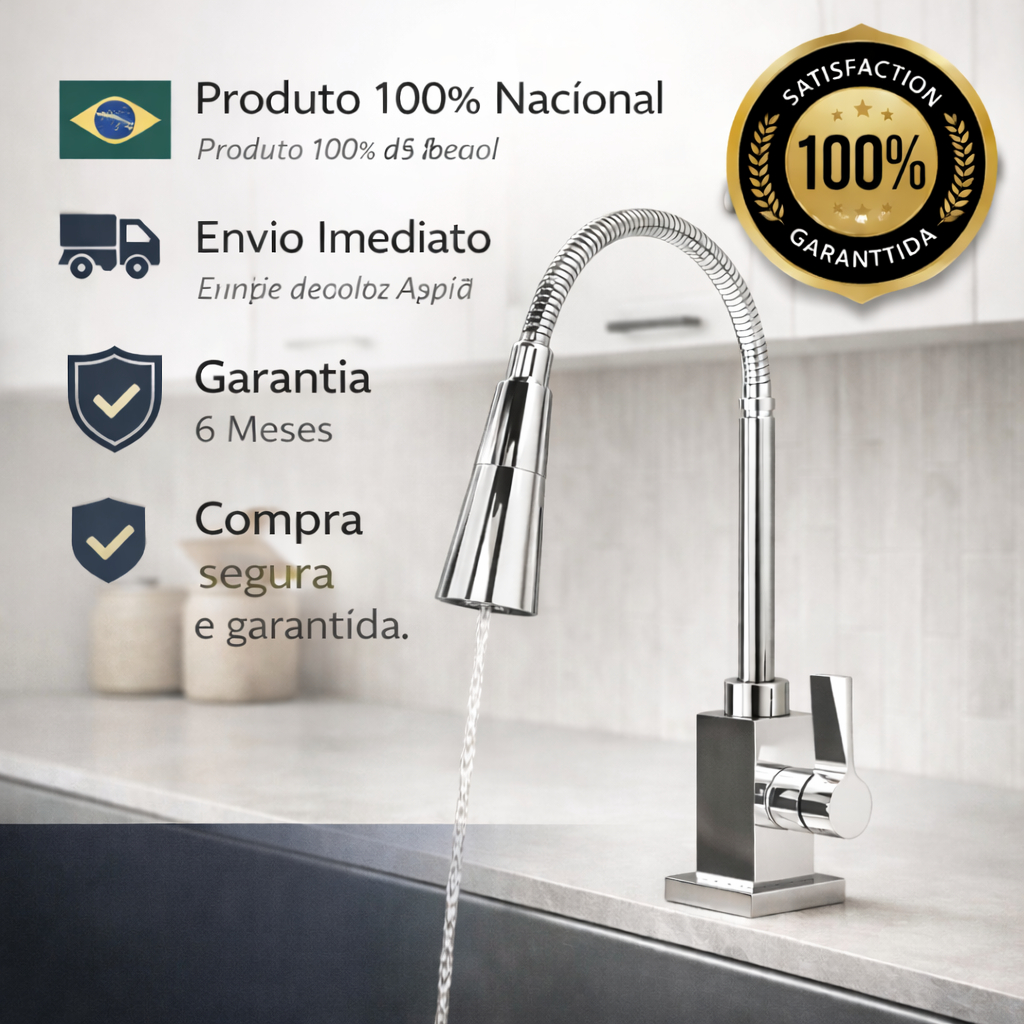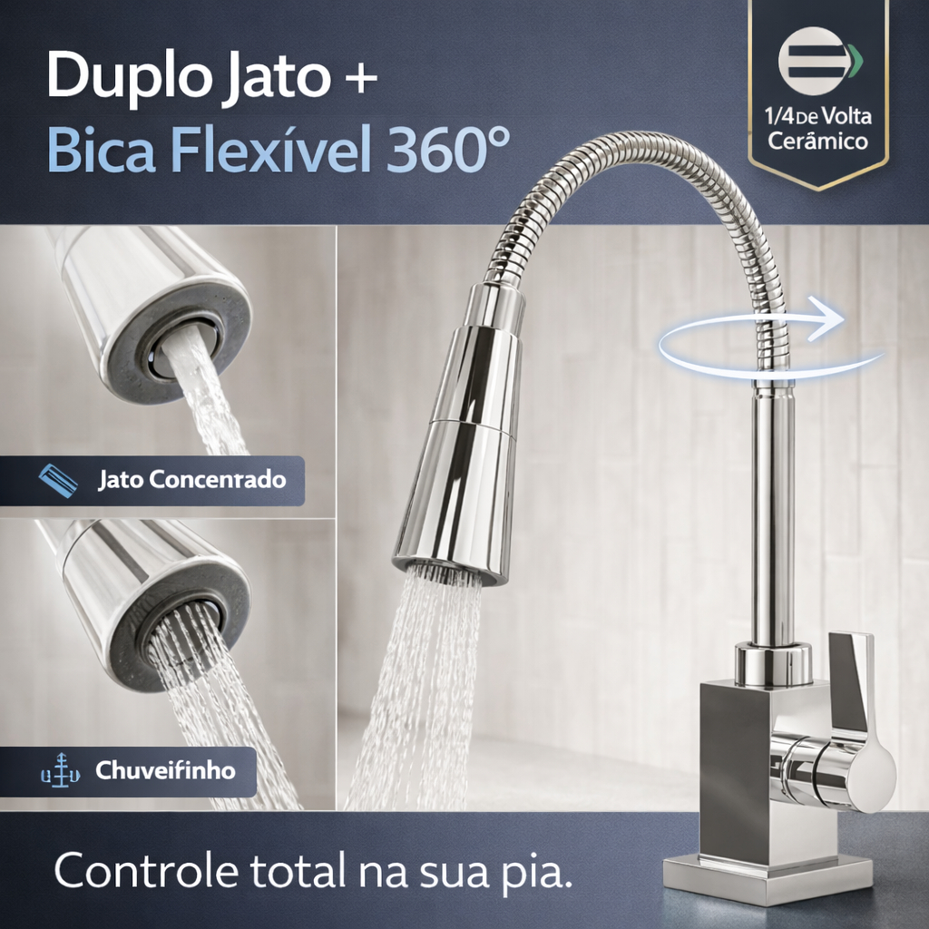 Torneira Gourmet Cozinha Flexível Inox Cromada 1/4 Volta Duplo Jato 360° Bancada Luxo