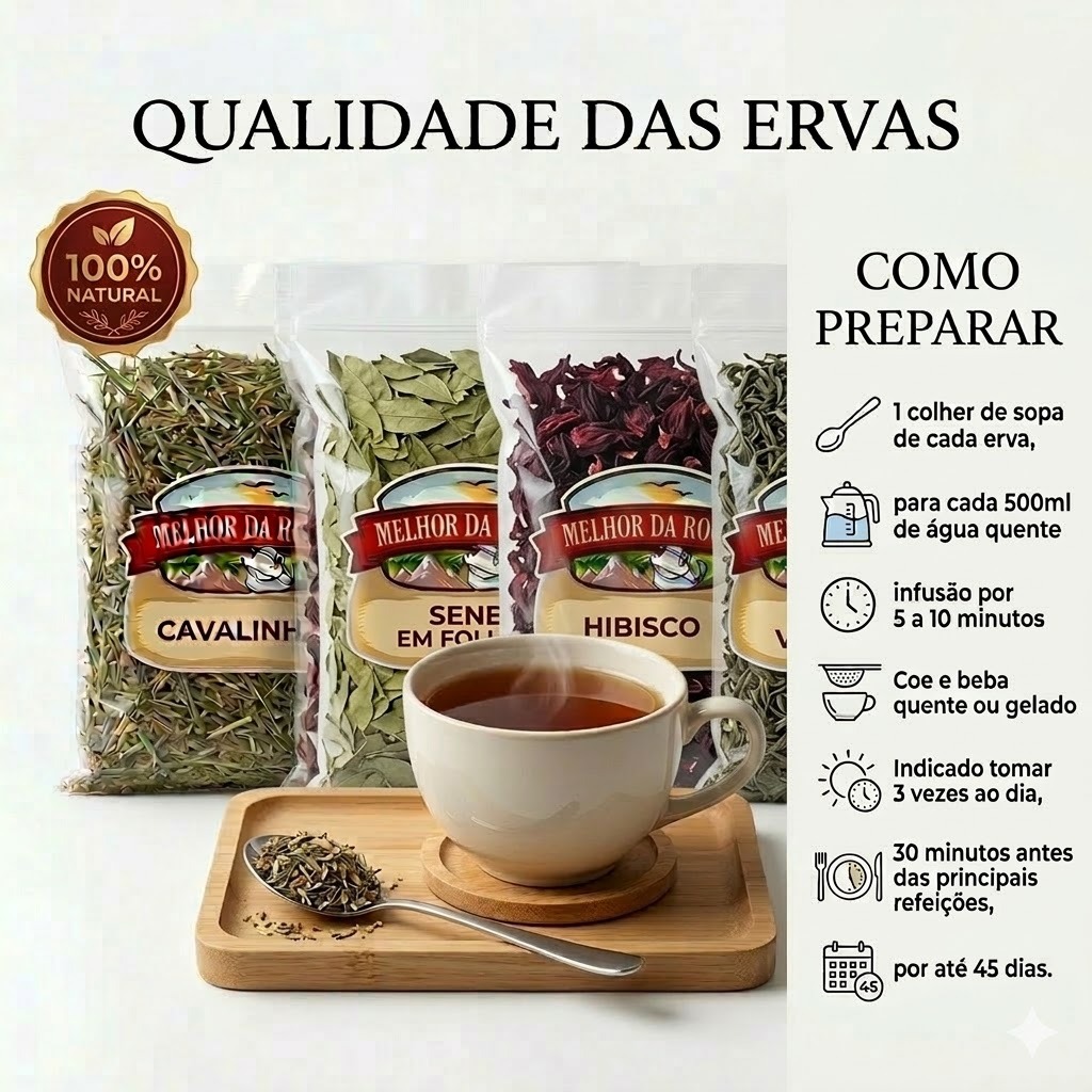 Kit 4 chás Xô Gordura Hibisco Chá Verde Cavalinha e Sene em folhas 400g